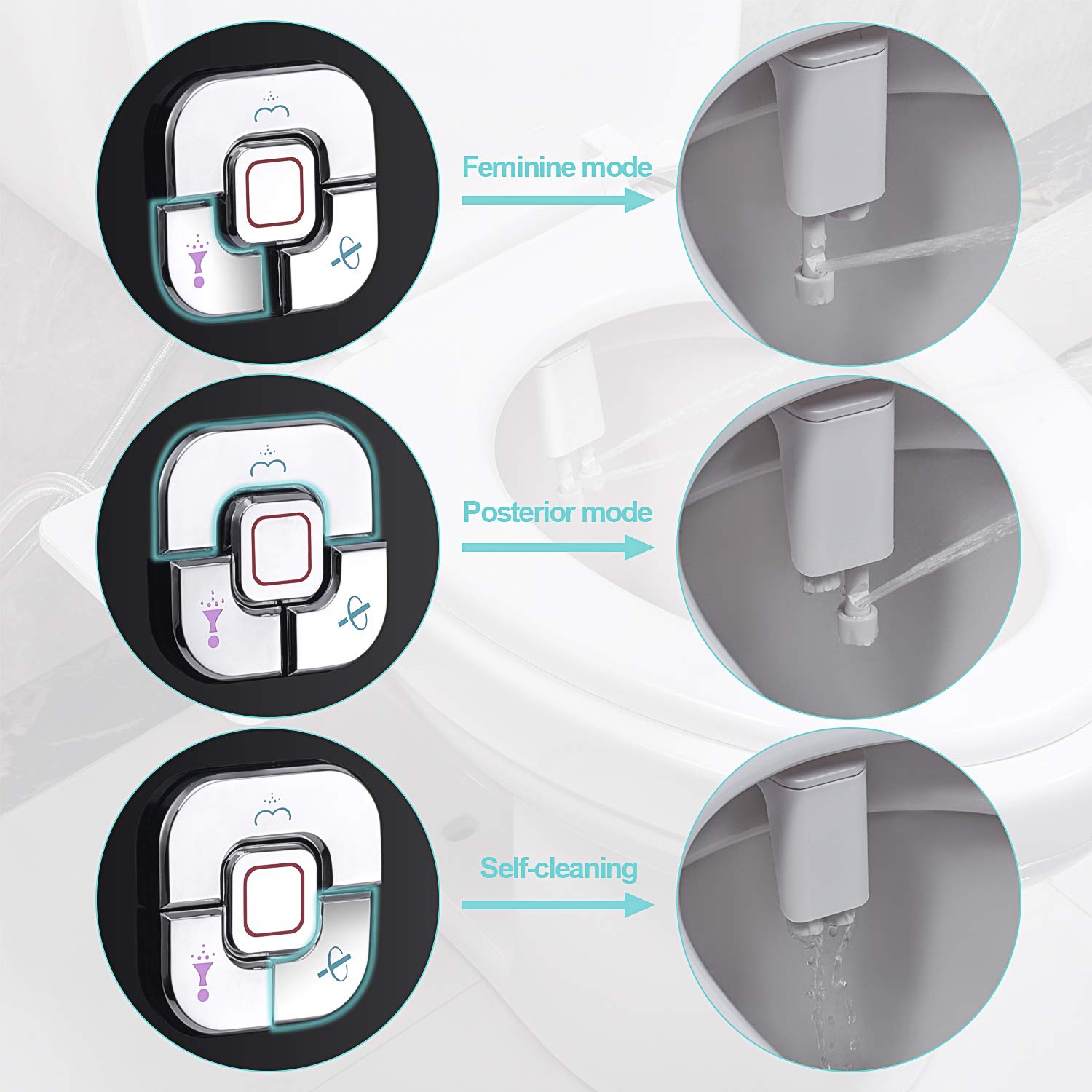 - Adjustable Water Spray: Water-pressure control knob allow you to adjust water pressure to create an experience that blends comfort and ease of use, enjoy a perfect healthy life. Elderly and children can also easily use bidets to get ideal intensity