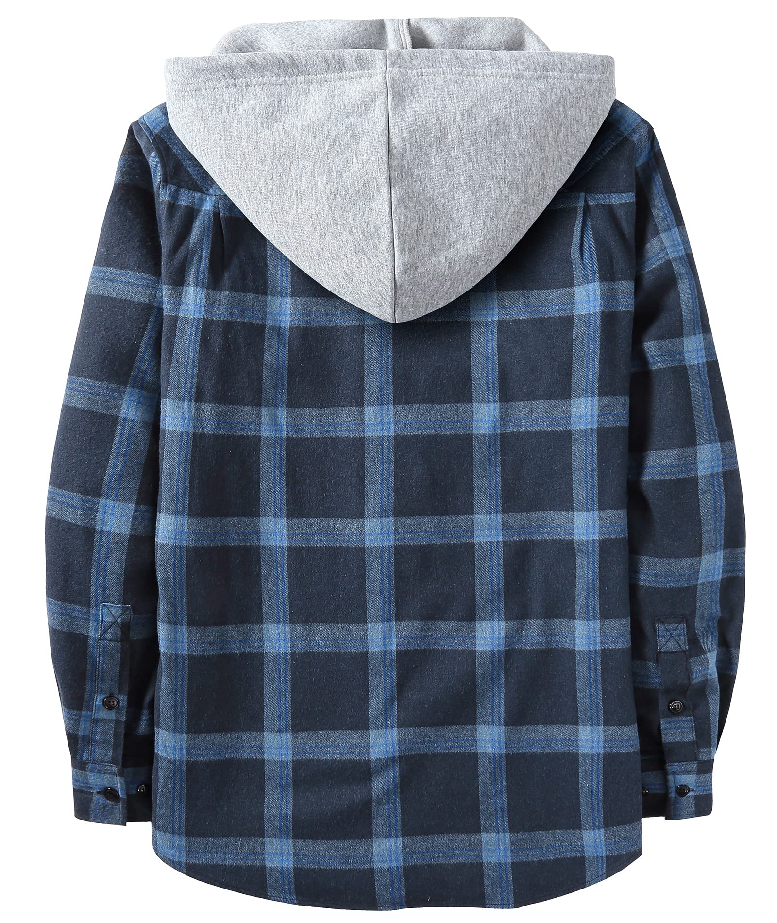SCODI Mens Flannel Hoodie Shirt Casual Button Down Plaid Jacket Shirts Stylish Long Sleeve Shirts with Pocket Navy X-Large