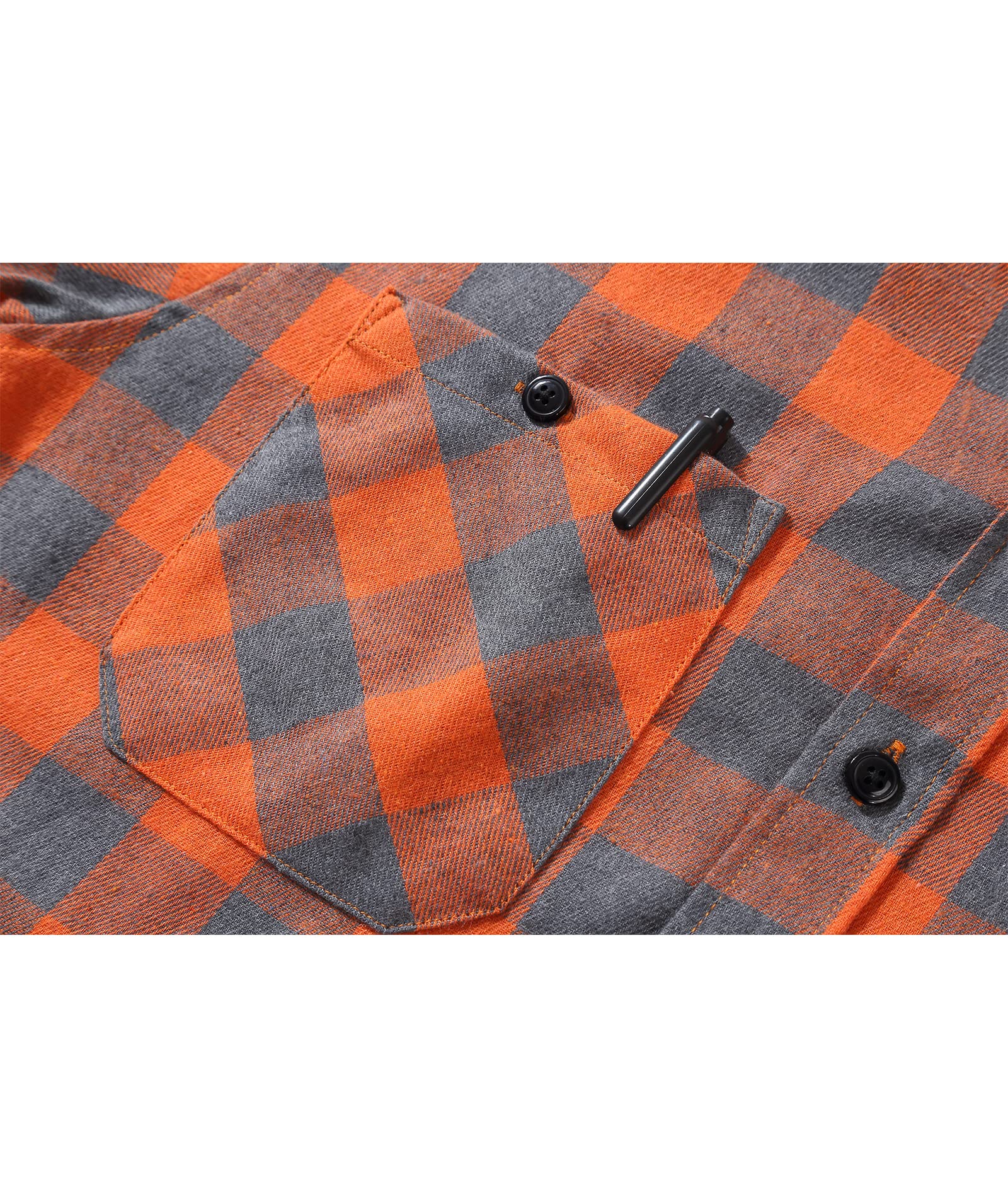SCODI Mens Flannel Hoodie Shirt Casual Button Down Plaid Jacket Shirts Stylish Long Sleeve Shirts with Pocket Orange Large