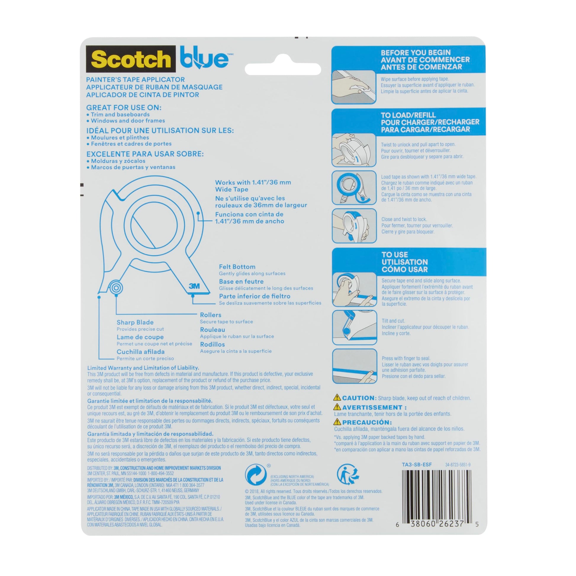 Details: The ScotchBlue Painter's Tape Applicator is the go-to tool for faster, easier prep with precision. The new ScotchBlue Painter's Tape Applicator applies painter's tape in one continuous strip, with an easy-to-hold circular grip and a felt pad that gently glides across surfaces. Great for use on trim, baseboards, windows, and door frames. And the sharp blade provides a straight, precise cut.