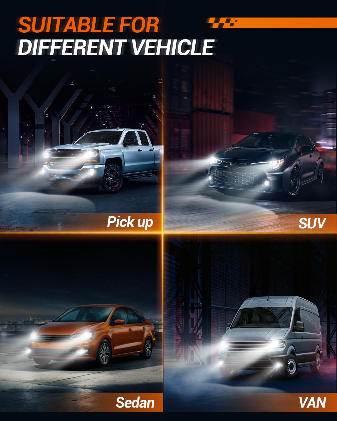 - Universal Compatibility: With compatibility for 99% of vehicles, these fog bulbs fit a wide range of H11 led fog lights applications. They can serve as automotive fog lights LED bulb or daytime running lights for cars, trucks, and SUVs. For confirmation, refer to your vehicle's manual. Fit for H11/H16/H9/H8 LED fog lights, LED bulbs, and DRLs