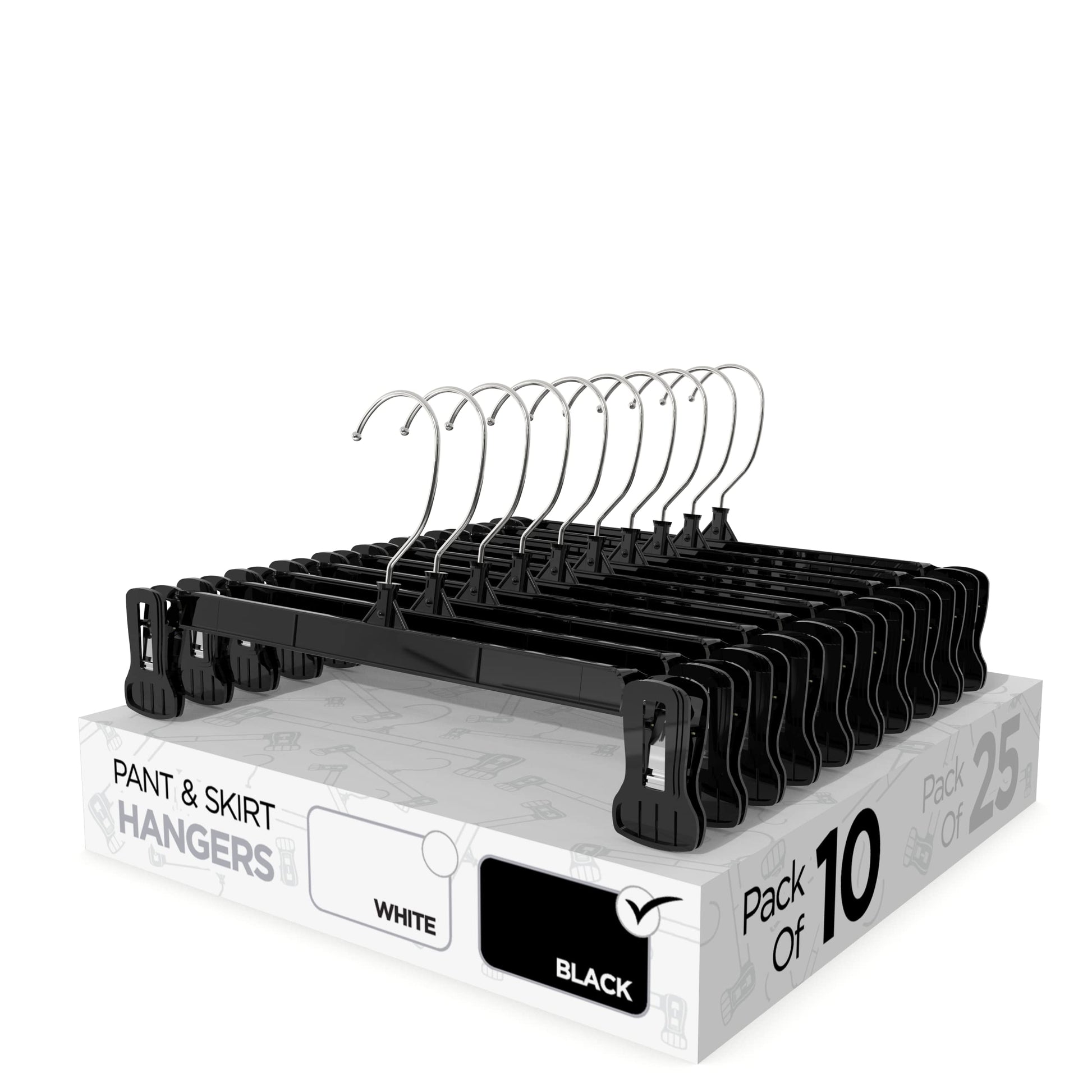 Sharpty Pant & Skirt Hangers - Closet Hangers for Shorts, Shirts, Jeans, Dresses, Slacks, Coats, Clothes, Clothing, Garments & More - Durable, Space Saving & Non-Slip, Black - 10 Pack