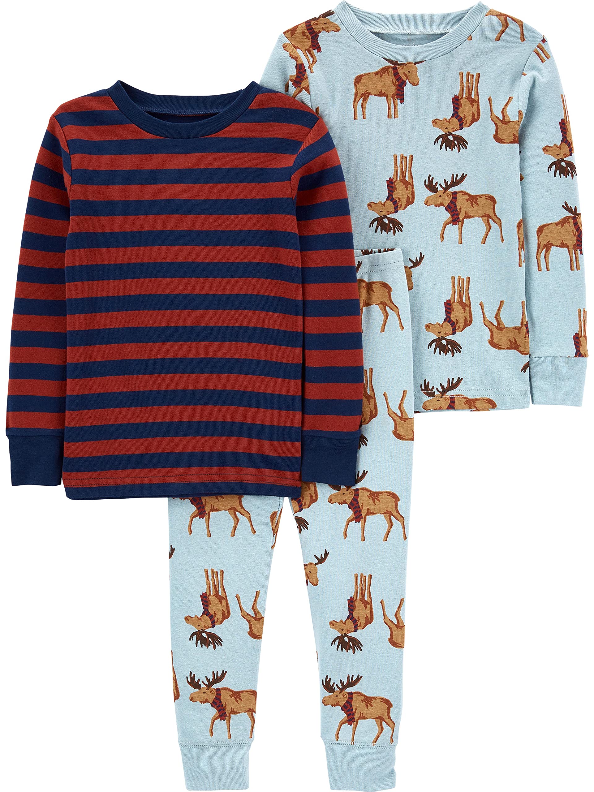 Simple Joys by Carter's Baby 3-Piece Snug-fit Cotton Holiday Pajama Set, Burgundy Stripe/Light Blue Moose, 5