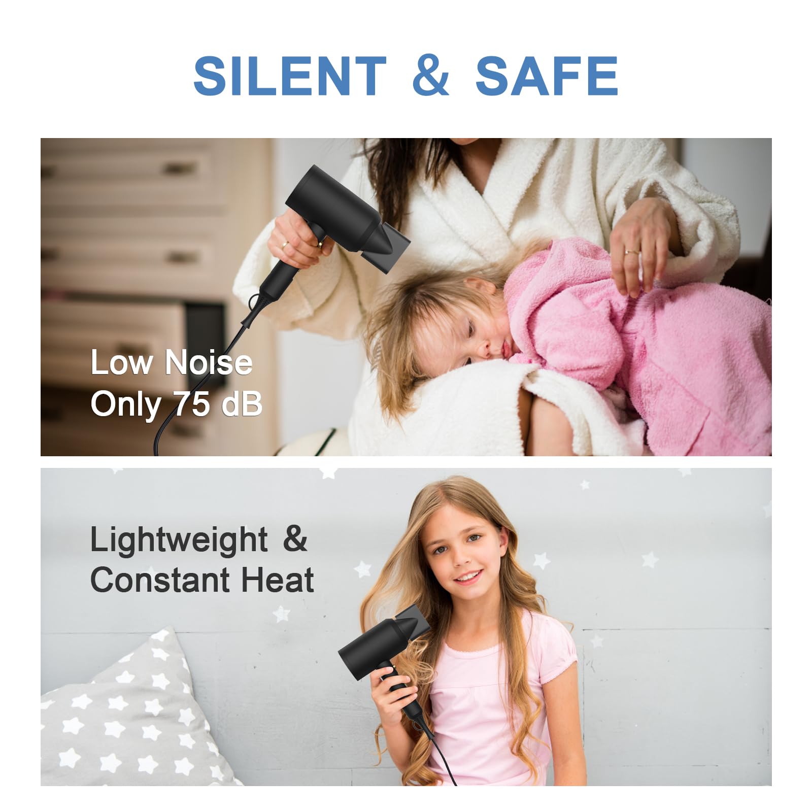 - Powerful Motor for Faster Drying: The professional hair dryer delivers strong wind for fast drying even thick wavy hair in less time, because of the high airflow motor, up to 21,000 rpm. Compact design will be more lightweight & portable.
