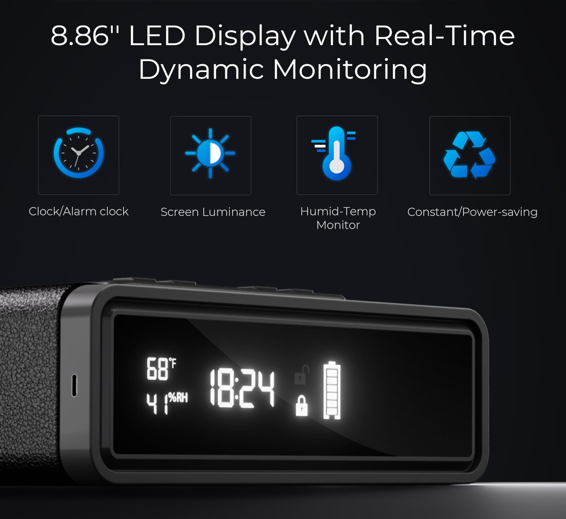 - 【Smart Clock Safe with LED Display】 Connect the adapter to the clock fingerprint safe for a continuous display that shows the time, humidity, temperature, battery life, and the status of the biometric lock. Stay informed and maintain control over your valuables effortlessly