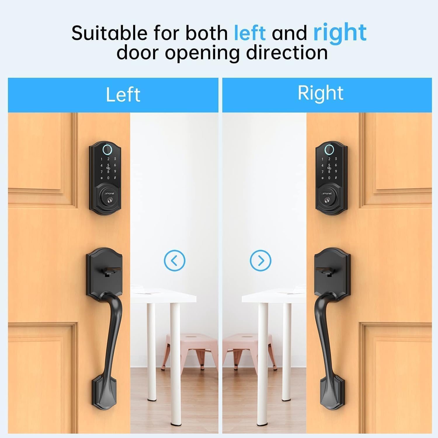 Smart Lock Front Door, SMONET Keyless Entry Door Lock with Handle, Smart Front Door Lock Set Fingerprint Smart Deadbolt Bluetooth Electronic Digital Keypad Lock, Auto Lock Work with Alexa, Black
