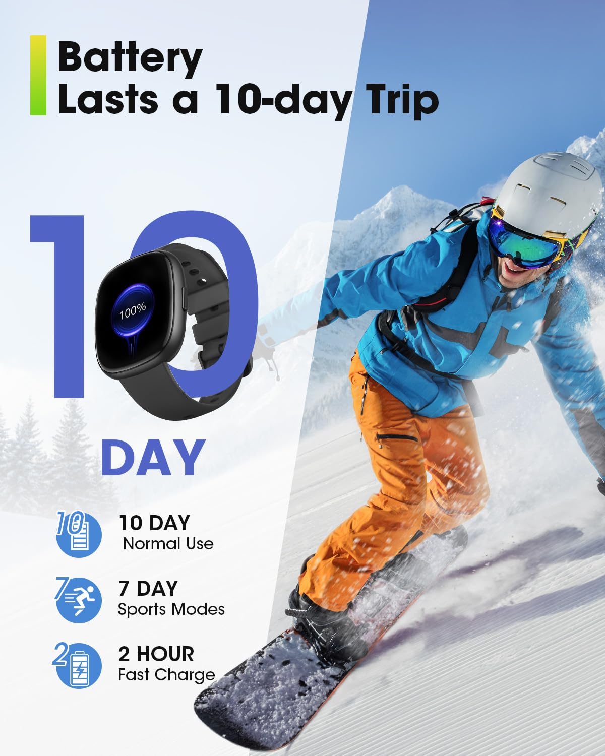 - 120+Sport Modes and 5ATM Waterproof: Achieve your fitness goals with over 120 sport modes (snowboarding, running, trail running, cycling, swimming, etc.) tailored to your workout. Smart watches for men record calories burned, number of steps, training time and distance for a variety of activities. Smart watches for women are also water-resistant up to 5 ATM, making it your ideal training partner
