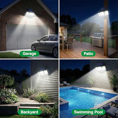 - IP65 WATERPROOF & WIRELESS INSTALLATION – Made of durable ABS material with an IP65 waterproof rating, these solar security lights withstand rain, snow, frost, and high heat. No annoying wires or adapters needed—simply mount it on an exterior wall using the included screws. Ideal for porches, eaves, gardens, and decks
