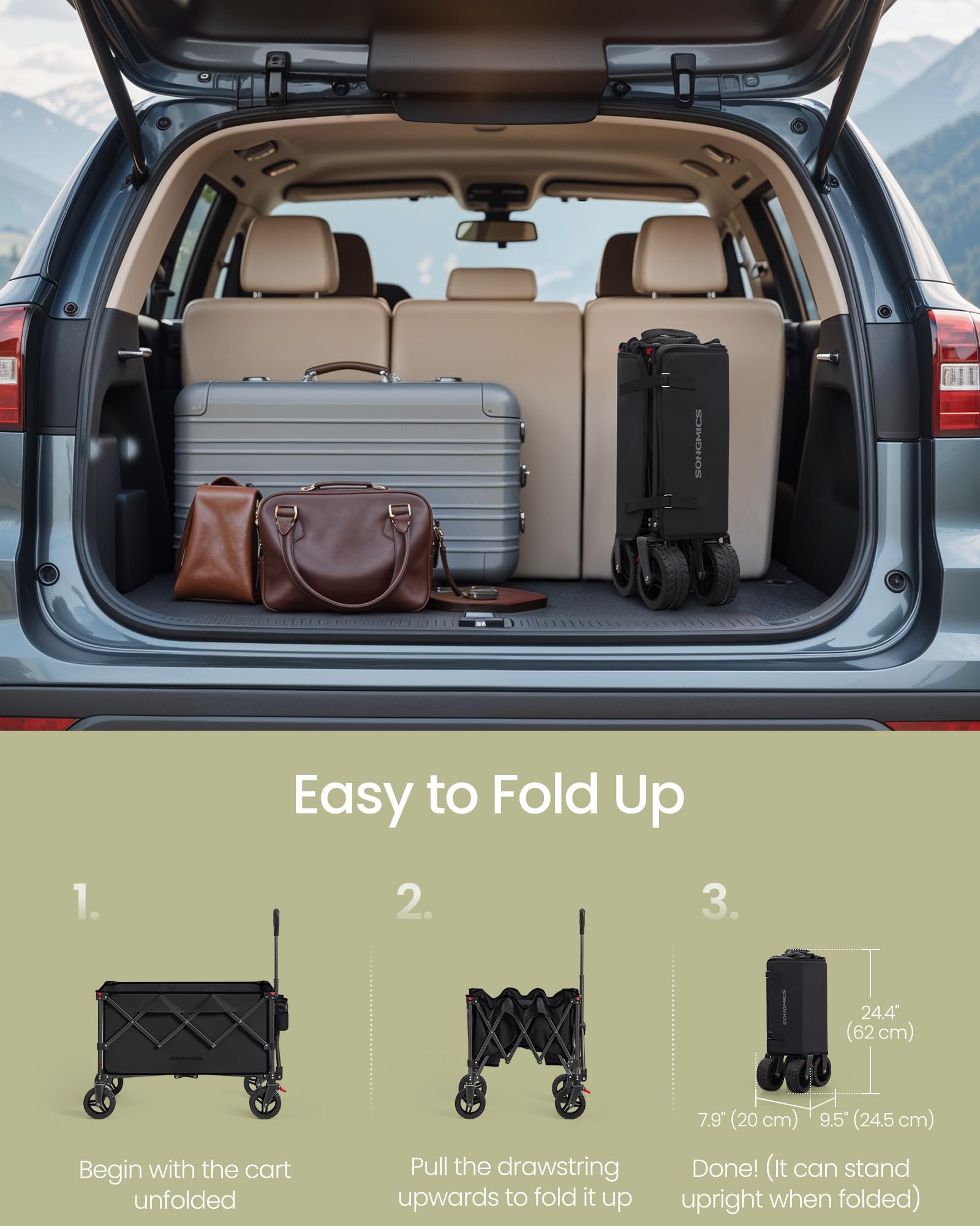 • 【SPACE-SAVING STORAGE】With its compact folded size of just 9.5"D x 7.9"W x 24.4"H, the wagon allows for easy and space-saving storage, perfectly fitting into empty corners of your home or the boot of your car