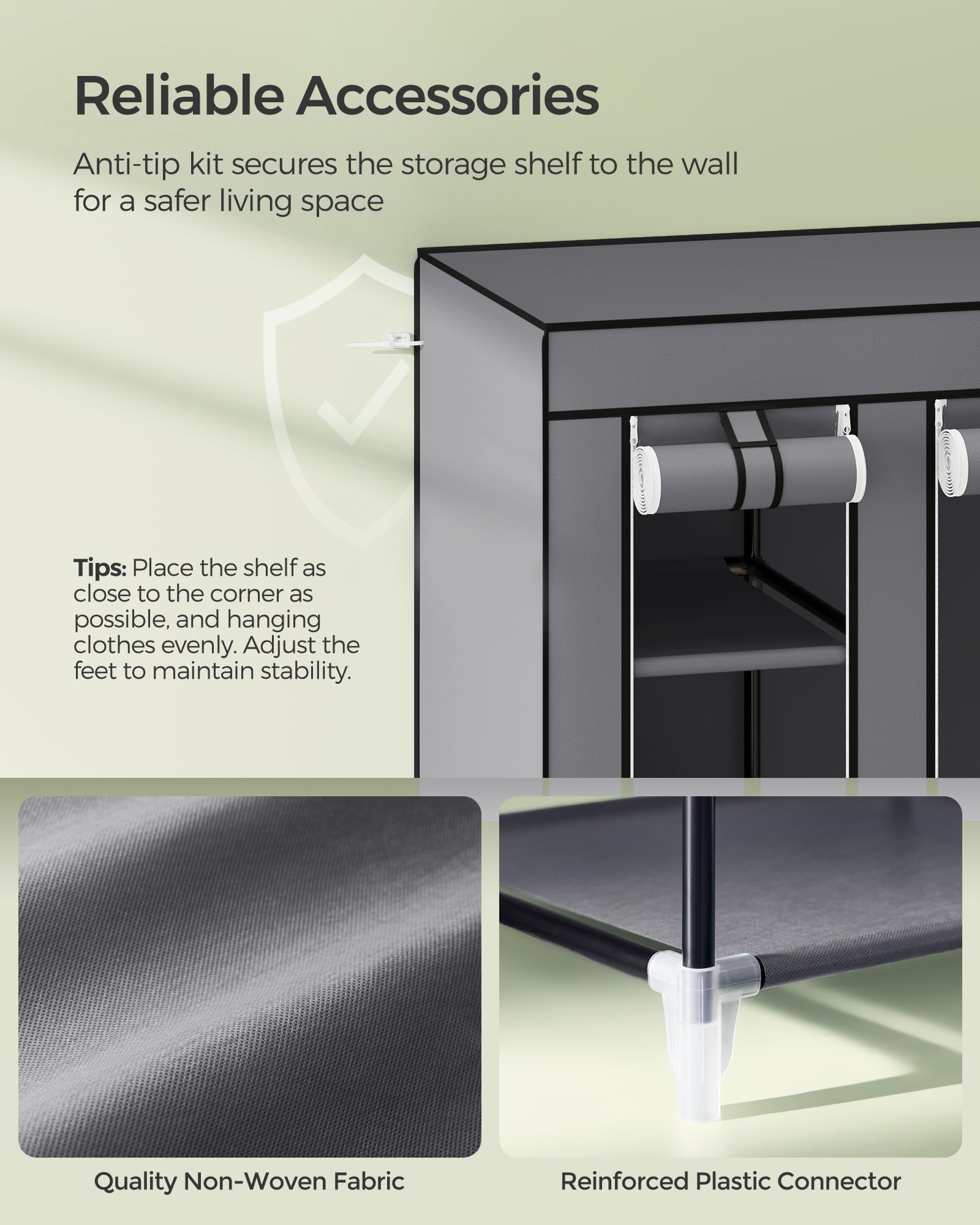 SONGMICS Closet Wardrobe, Portable Closet for Bedroom, Clothes Rail with Non-Woven Fabric Cover, Clothes Storage Organizer, 59 x 17.7 x 69 Inches, 12 Compartments, Gray ULSF03G