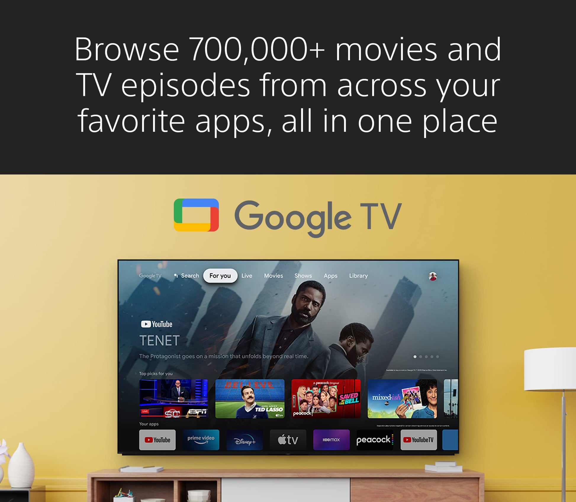 - PREMIUM SMART TV – Google TV with Google Assistant organizes your favorite content all in one place. Stream from Prime Video, Netflix, Disney+, Apple TV, HBO Max, Peacock and many more. Also, stream from your Apple device with AirPlay 2 support.