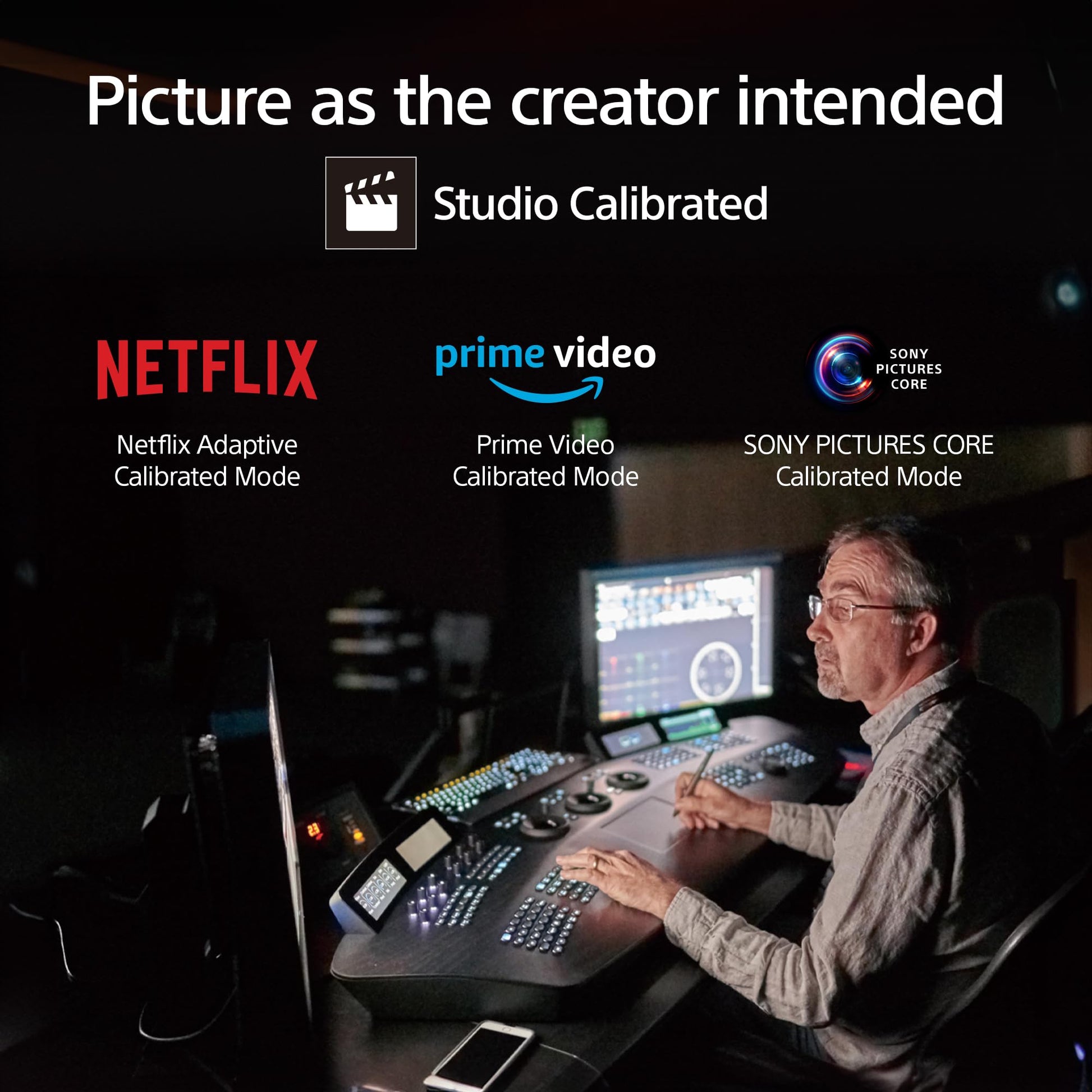 - STUDIO CALIBRATED PICTURE: See picture quality just as the creator’s intended with studio calibrated picture modes specially designed for Netflix, Prime Video, and SONY PICTURES CORE.
