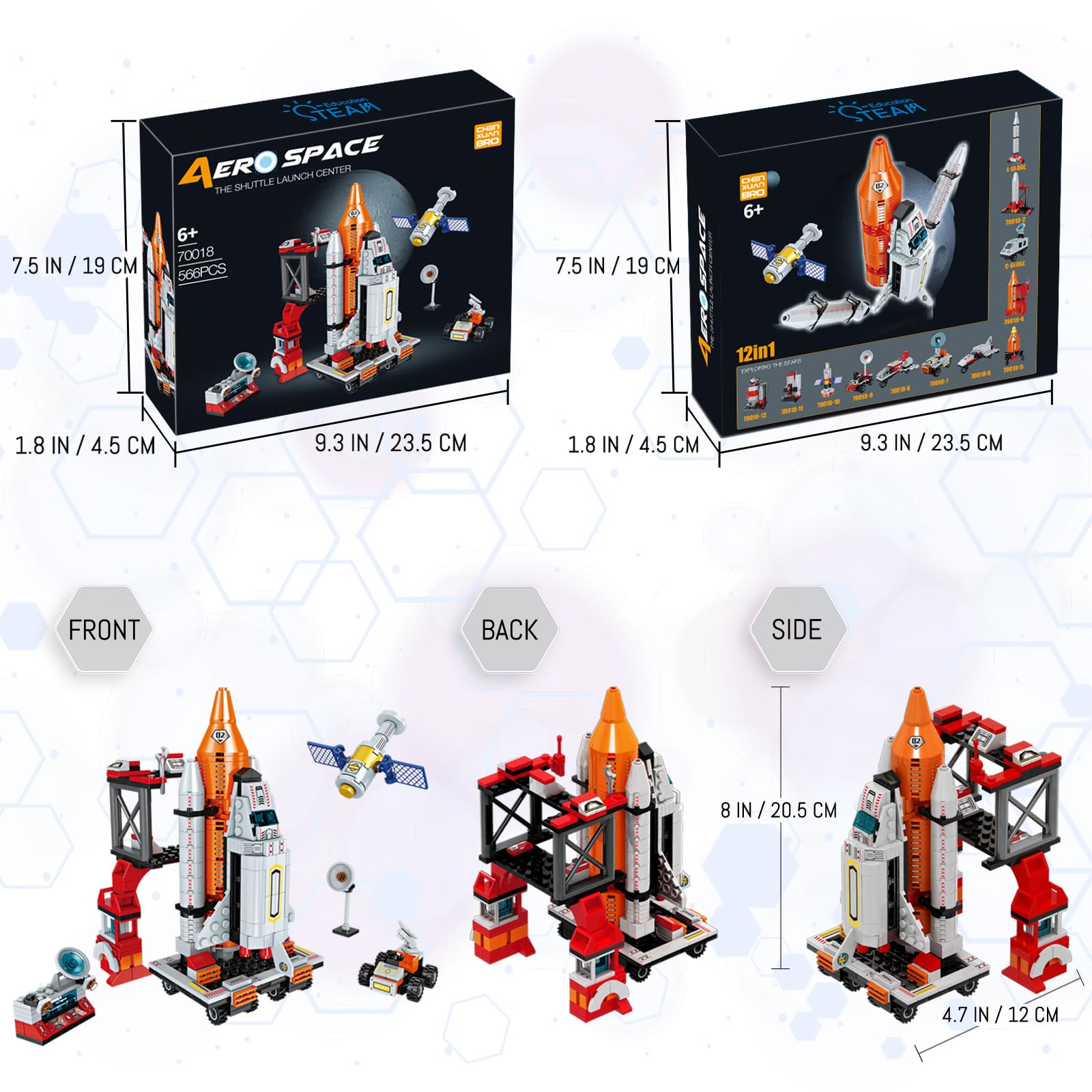 - [12-in-1 Space Toy Building Block Set] - 566PCS of the STEM Toy can be build into 12 space vehicle models, such as space shuttle, satellite, rockets and vehicles. Build the blocks with your child and enjoy a happy parent-child time.