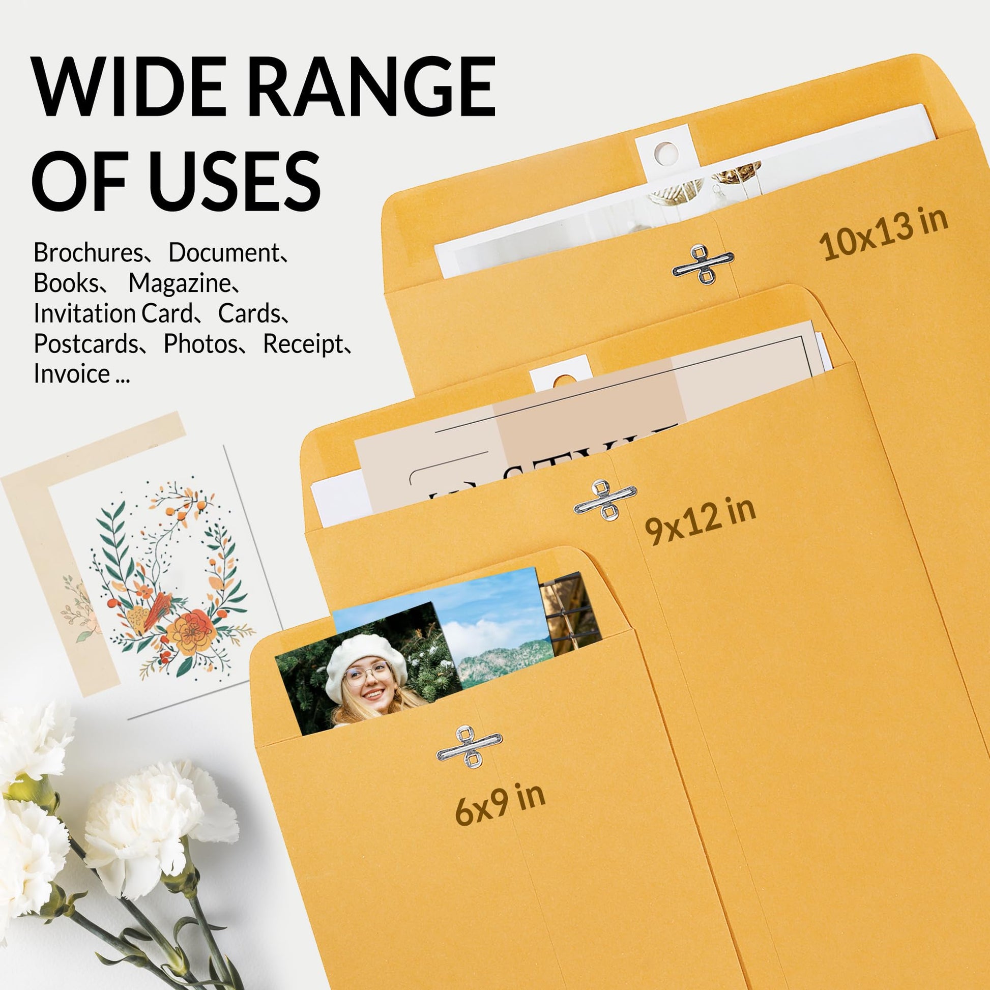 • Clasp Mailing Envelopes: SUNEE's 10x13 manilla envelopes, have metal clasps, reinforced eyelets & gummed seals. Ensuring the security and durability of your mail in a completely sealed environment