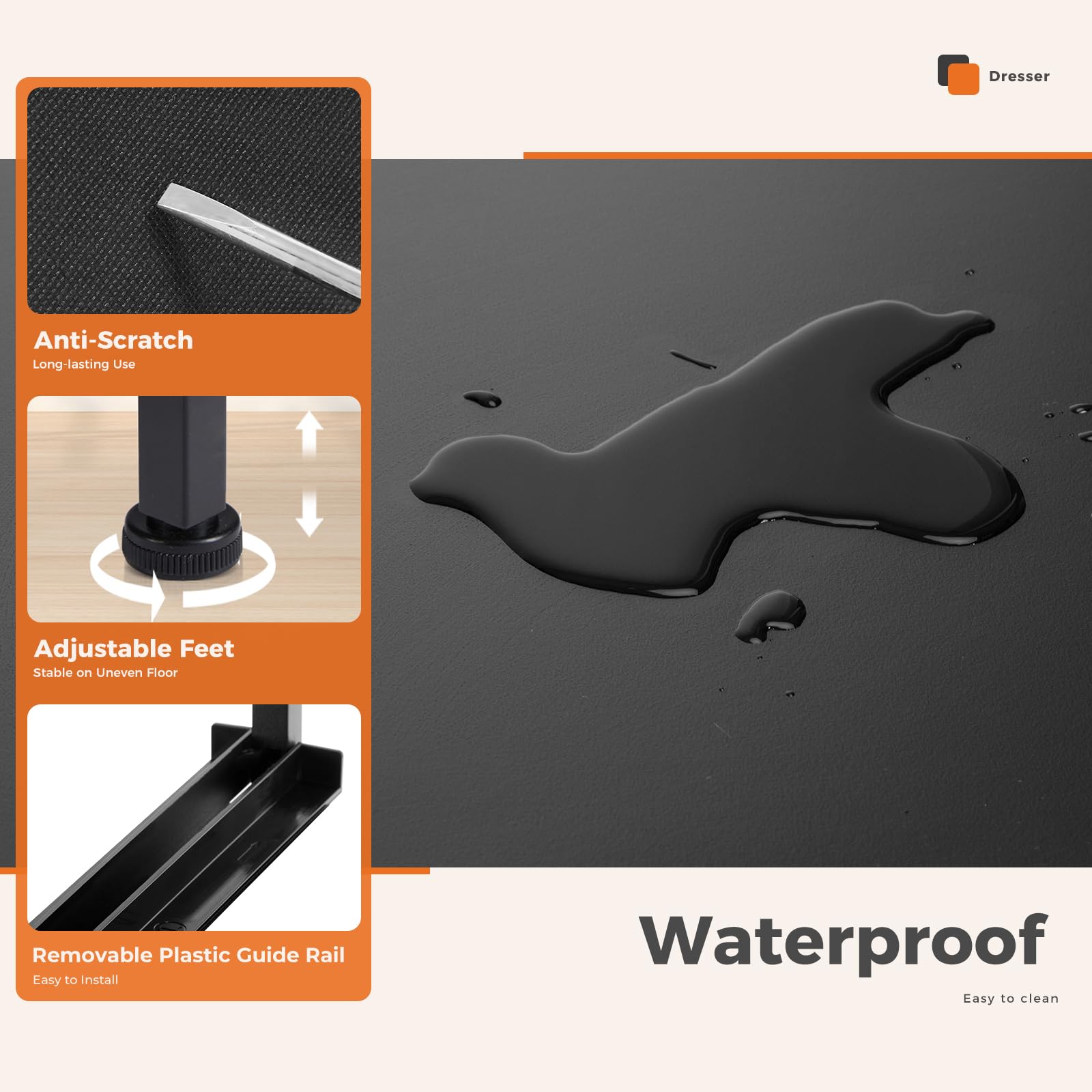 - 【Rock-Solid Construction】:Built with a reinforced metal frame and 4 adjustable anti-scratch feet, this dresser remains stable on any floor surface. Includes a safety anti-tip kit for wall mounting (hardware included), making it child-proof and pet-friendly for ultimate peace of mind.