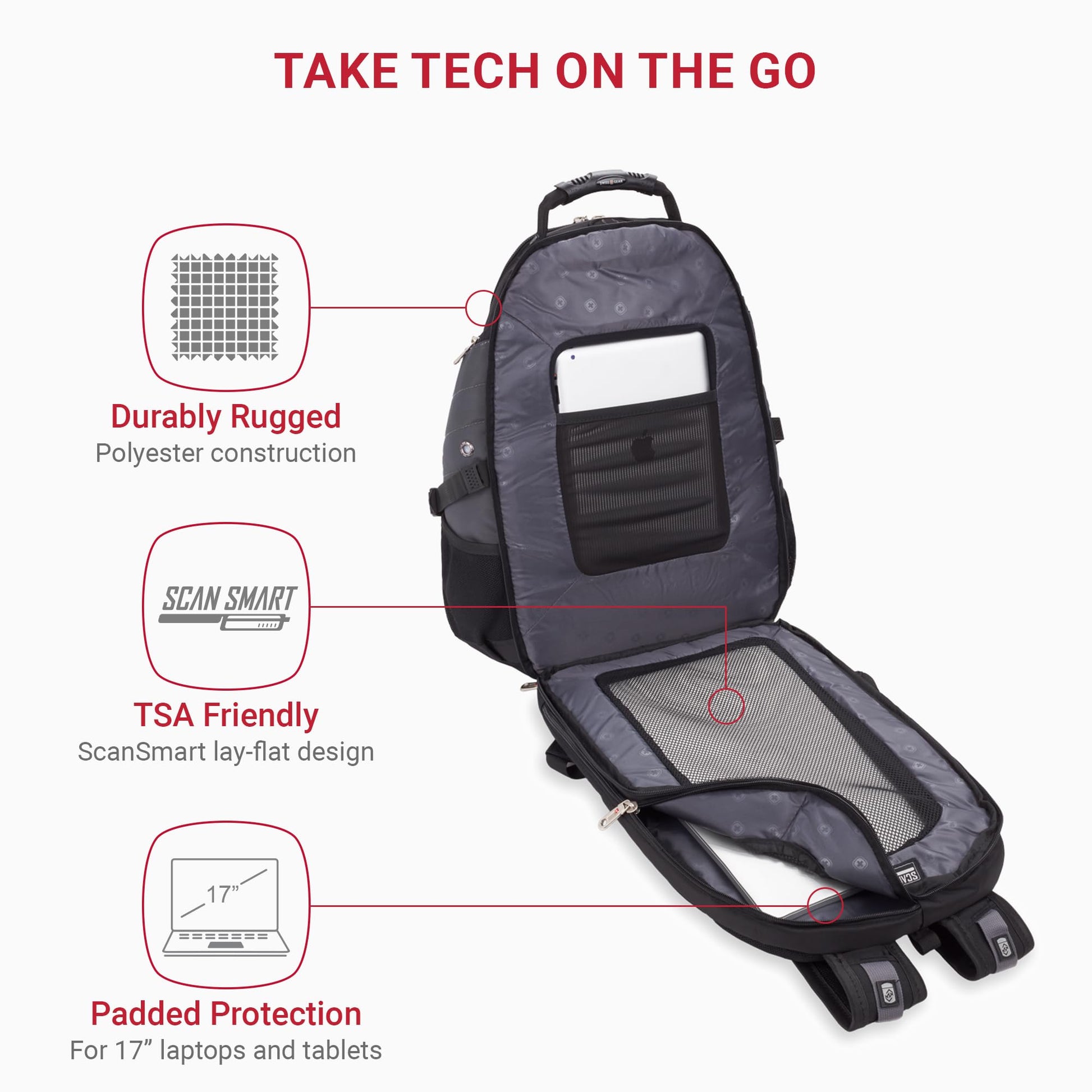 SwissGear 1900 Scansmart TSA 17 Laptop Backpack, Grey/Black, 19-Inch