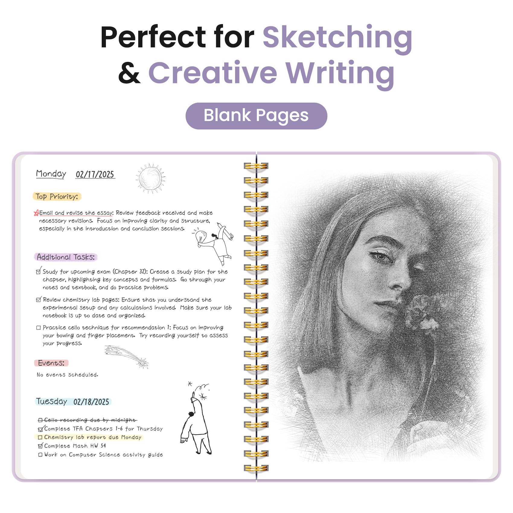 • Organized and Functional Design: With 140 blank pages, this notebook allows maximum creative freedom for artists, writers, and visionaries. The elastic closure band ensures the notebook stays securely closed during travel.