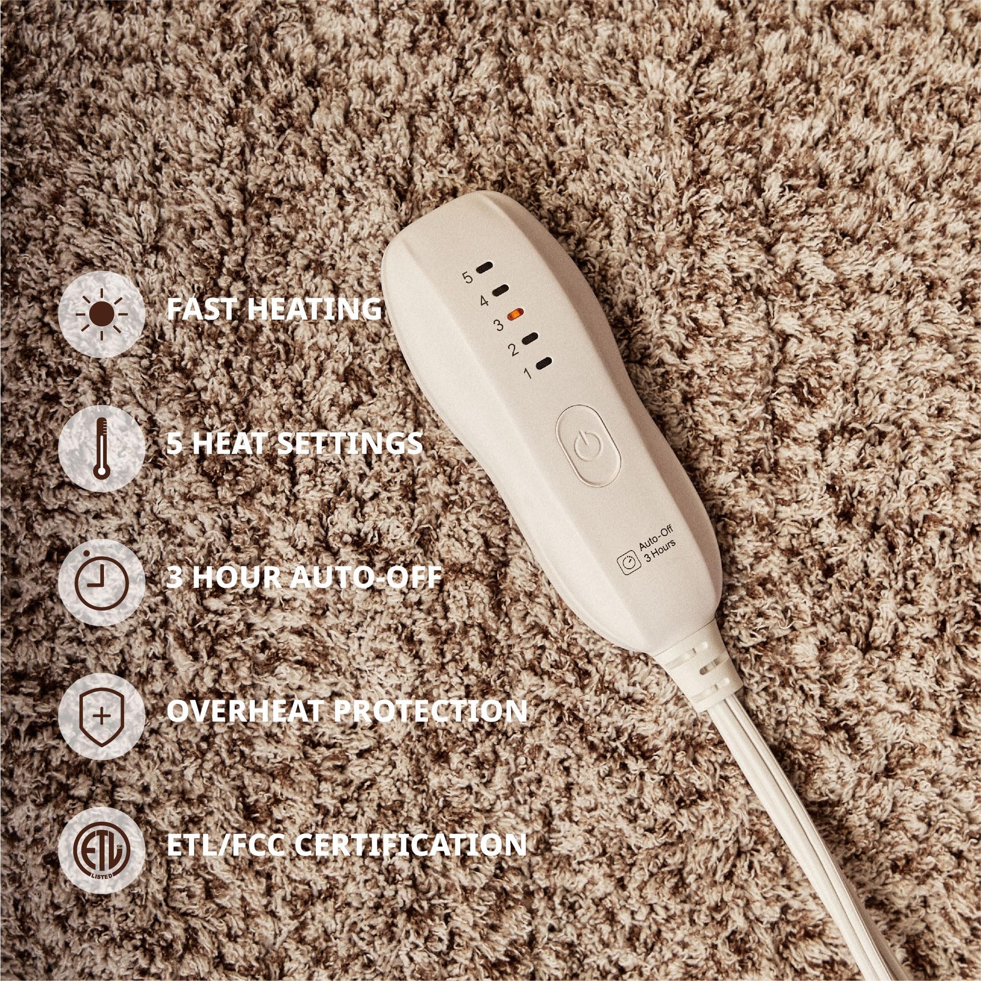 - Ensure your safety:The heated blanket has been approved by FCC and ETL,the controller has the intelligent timing shutdown function,and the high quality heating blanket can be shut off automatically in 3 hours,the heated throw blanket is produced with a high standard of safety requirements,overheating protection,protecting you and the heated blanket throw,energy saving is achieved furthermore.