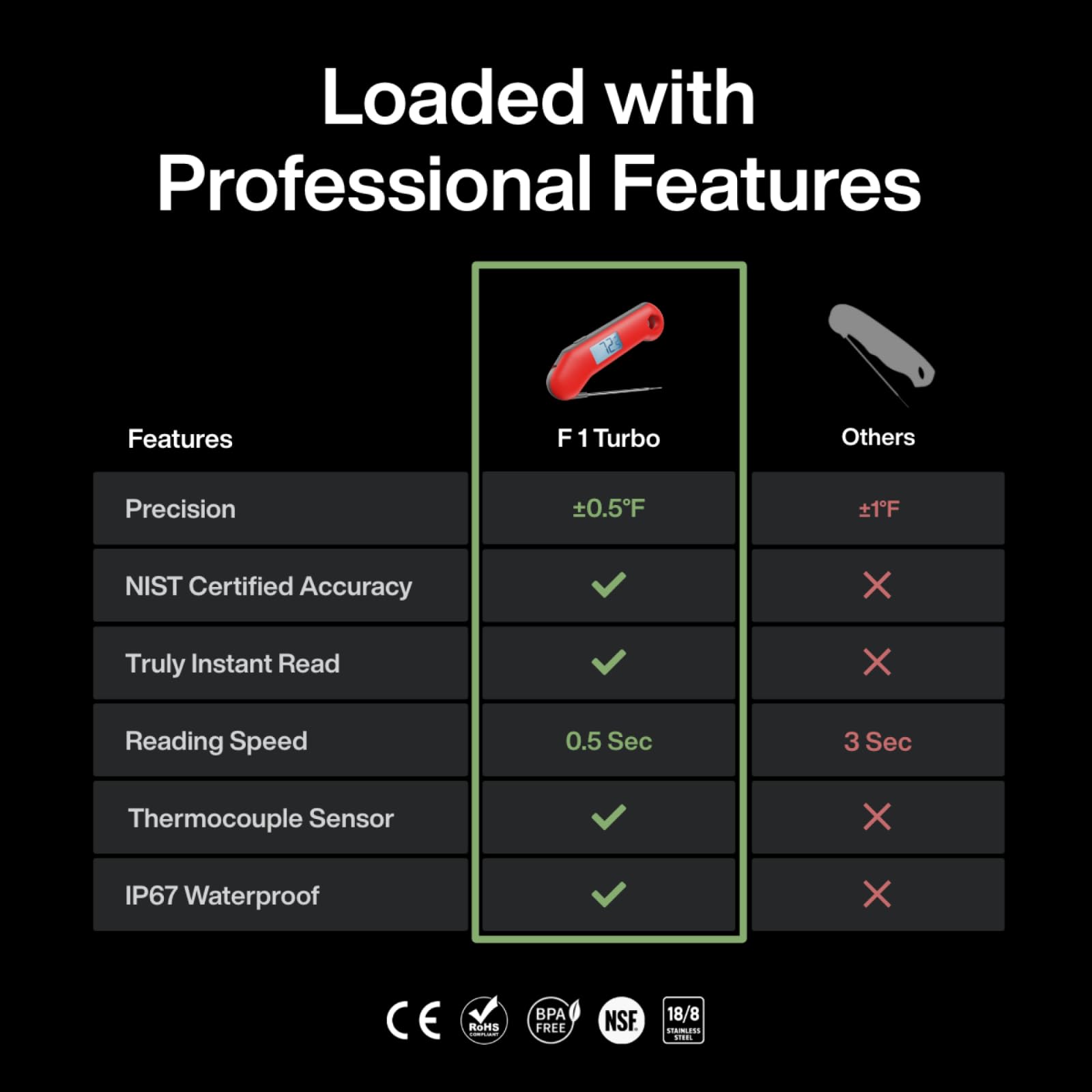 - 3X Faster 0.5s Readings: With cutting-edge Thermocouple applied temperature probe, ThermoMaven instant read meat thermometer for grill delivers speedy readings in just 0.5 seconds, 3X faster than the competitors, ensuring you always keep up with best cooking results.