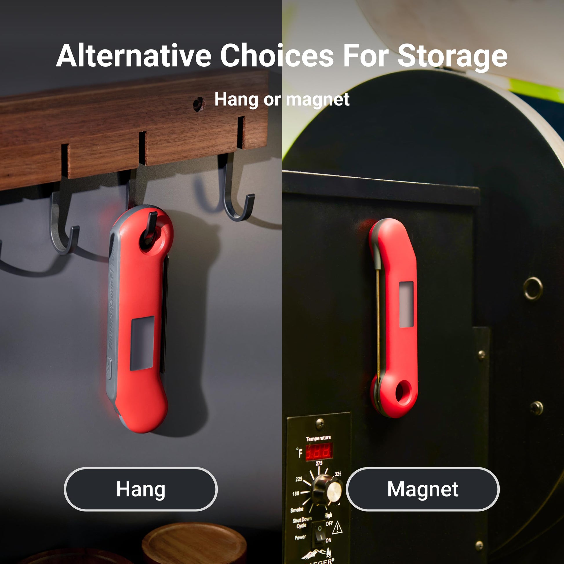- Versatile Storage: Featuring both hook and magnet designs, ThermoMaven food thermometer for grill offers versatility in storage, accommodating your preferences.