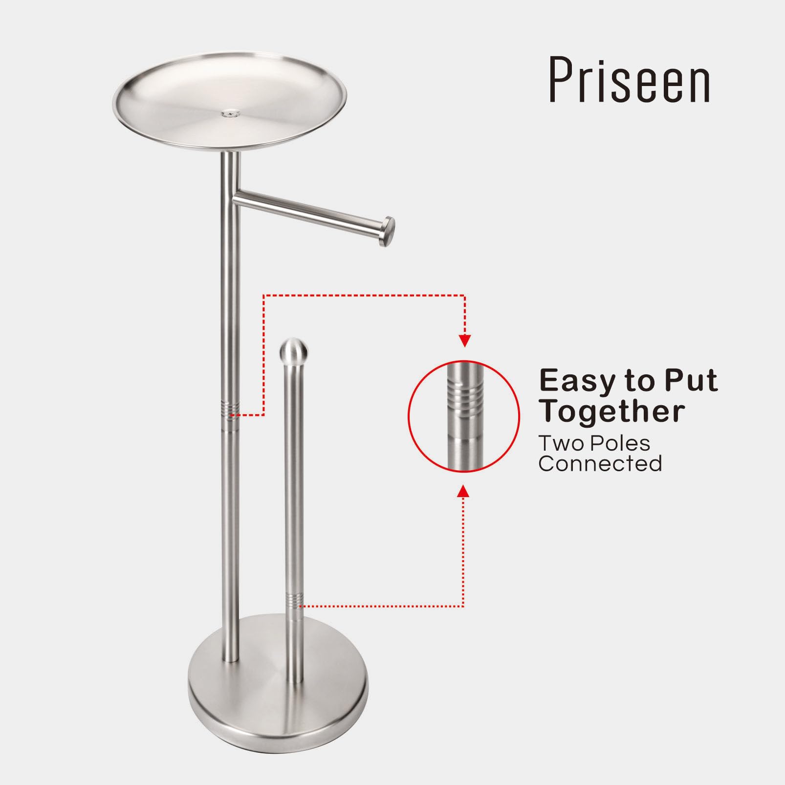 • Material: This toilet paper holder stand is constructed of Stainless Steel, durable materials to withstand daily use.