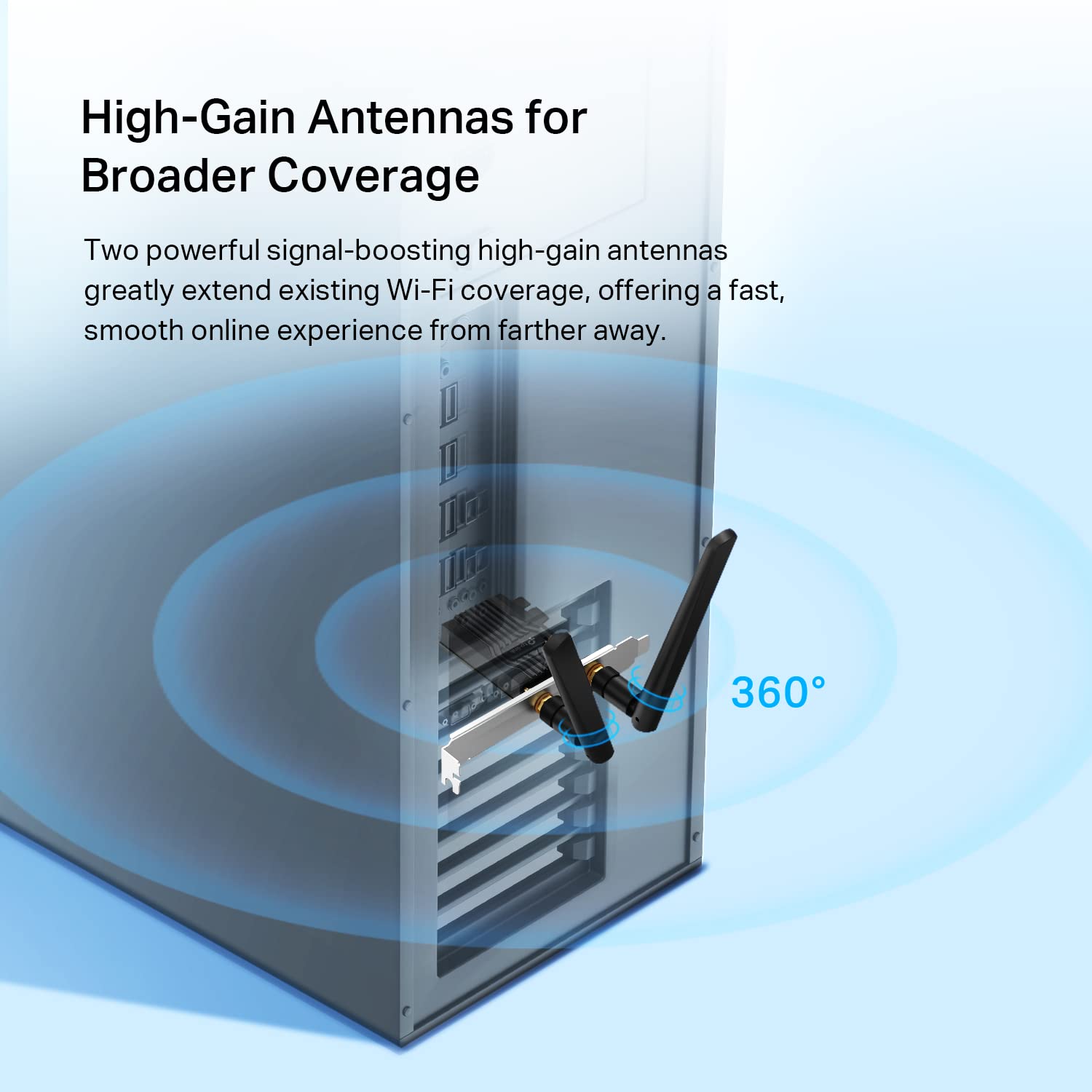 Details: TP-Link AX3000 Wi-Fi 6 Bluetooth 5.2 PCIe Adapter - High Performance for High Demands. The very latest WiFi standard, Wi-Fi 6, provides extreme speed, ultra-low latency,and uninterrupted connectivity so you enjoy faster downloads, smoother streaming, and more immersive gaming. Wi-Fi 6 comes with 1024-QAM and 160 MHz bandwidth for powerful, continuous WiFi. Bandwidth-intensive applications like VR demand high speeds, which Wi-Fi 6 deliversโ3ร faster than Wi-Fi 5. Just insert Archer TX55E into your PC for fully immersive VR experiences. High-Gain Antennas for Broader Coverage- Two powerful signal-boosting high-gain antennas greatly extend existing WiFi coverage, offering a fast and smooth online experience further away. Connect and Enjoy via the Latest The latest Bluetooth 5.2 Technology, achieves speeds 2ร faster and 4ร broader coverage than Bluetooth 4.2 to perfectly coordinate with your game controllers, headphones, keyboards, and other Bluetooth devices. Cutting-Edge Security- WPA3, the latest network security standard that provides safer and individualized password encryption, protects your network from wireless hacking and ensure your wireless connection is completely secure while surfing the web and shopping online. Ingenious Details Make a Perfect Whole. A customized heat sink improves connection stability by efficiently dissipating thermal energy. Additionally, gold plating on every contractor prevents oxidation. This attention to detail ensures your adapter is crafted for ultimate performance.