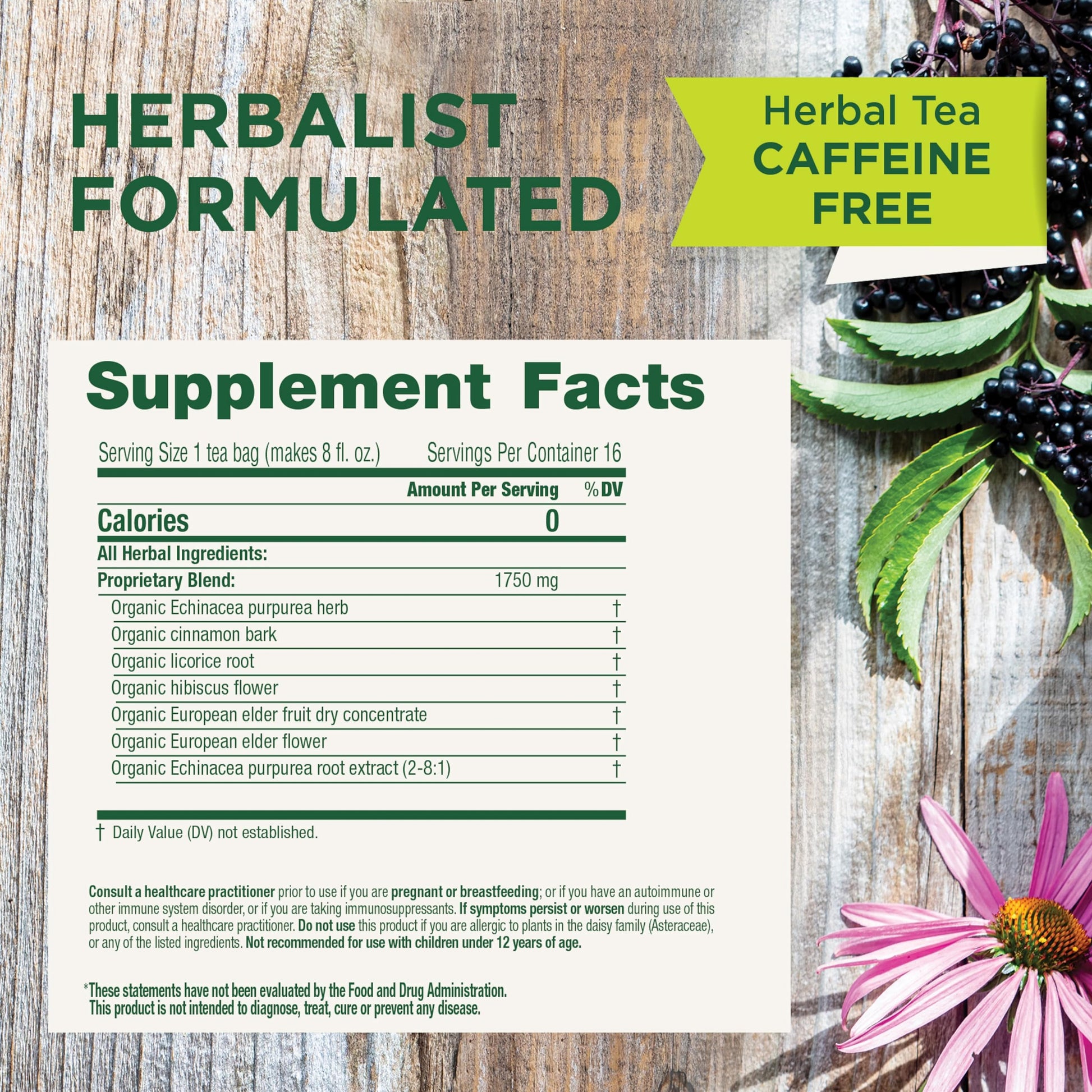• Herbal immunity blend: Elderberry Echinacea tea helps fire up the immune system*