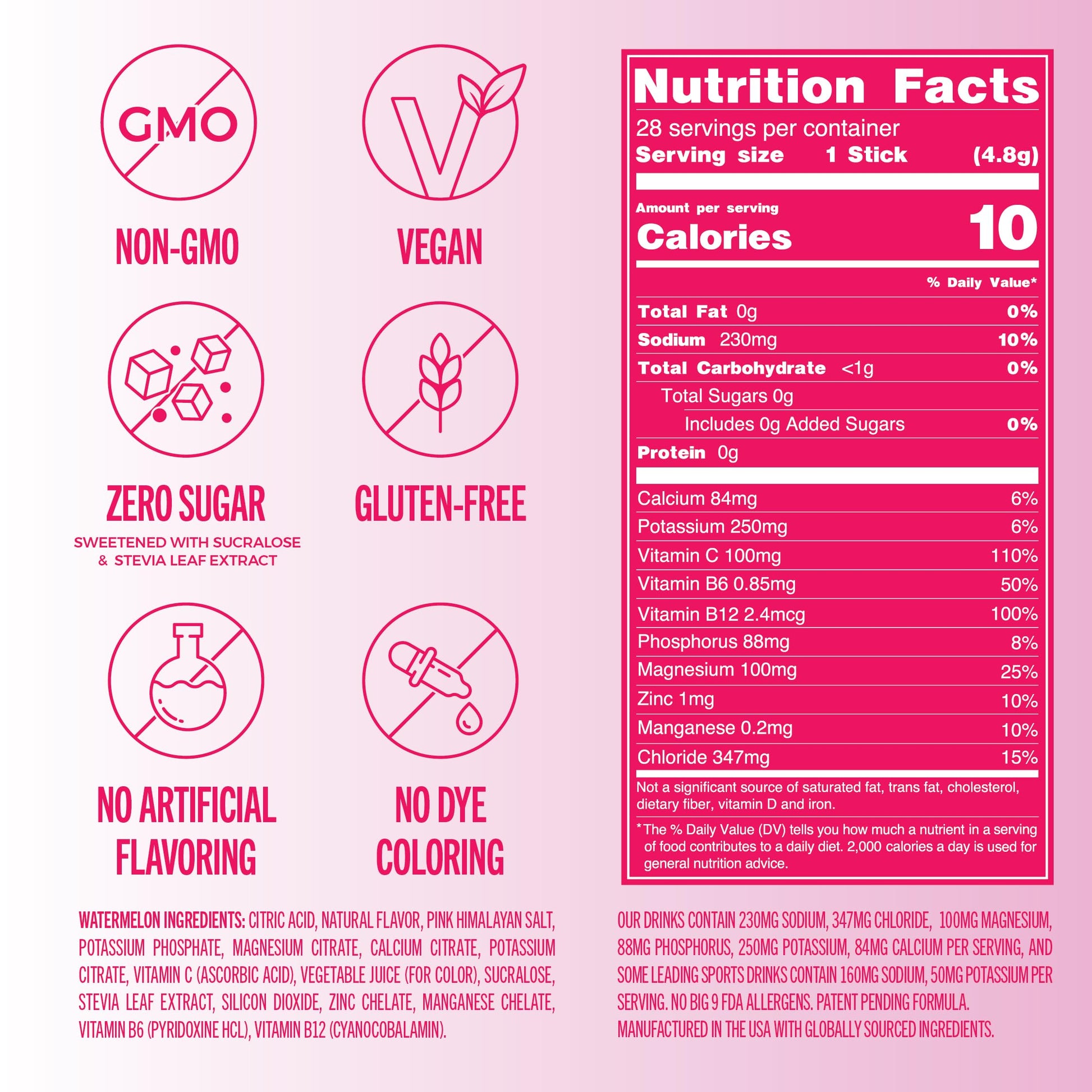- All the Good Stuff and Zero Sugar: Each stick is filled with 3x electrolytes vs traditional sports drinks - Sodium, Potassium, Magnesium, Vitamin C, Pink Himalayan Salt - all while being Sugar Free, Non-GMO, Allergen Free, Vegan, with No Artificial Preservatives and No Artificial Coloring