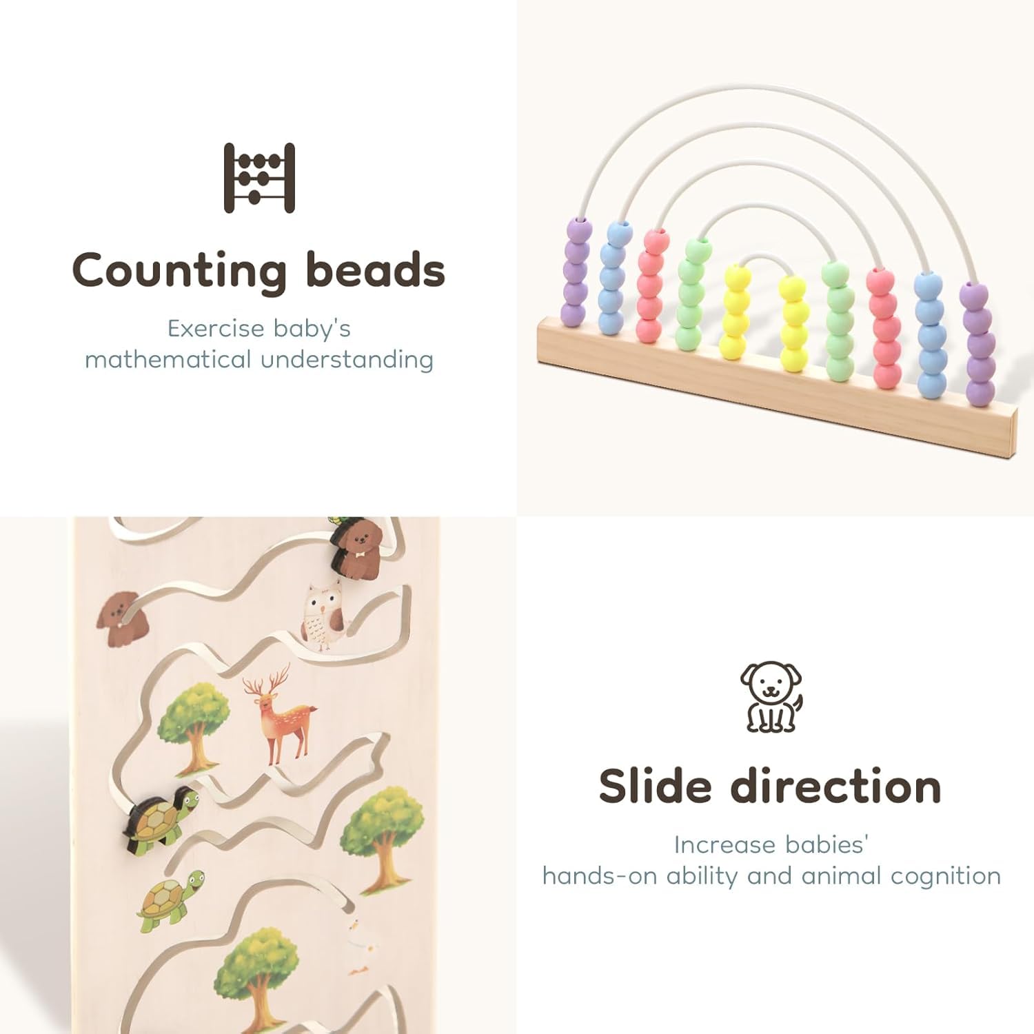 - Playpen with toys built in: toys are built in the panel of the baby fence to increase playtime in the playpen for toddlers 1-3, which encourages learning and interaction. It can also be an ideal activity center for babies aged 6-12 months and emancipate parents from the hard work.