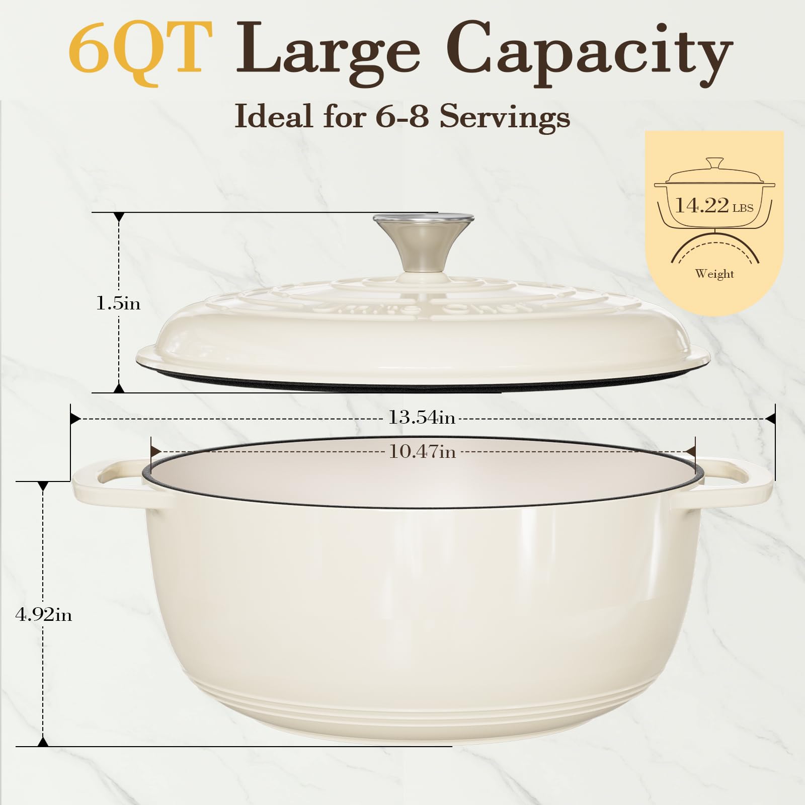 - 【Generous 6QT Capacity, Perfect for Family & Gifting】Designed for feasts and gatherings, this 6-quart Dutch oven comfortably serves 6-8 people, making it ideal for family meals and entertaining. Its elegant design is as practical as it is beautiful, transforming it into the perfect, thoughtful gift for weddings, new homeowners. It’s more than cookware—it's a gift of memorable meals and shared moments