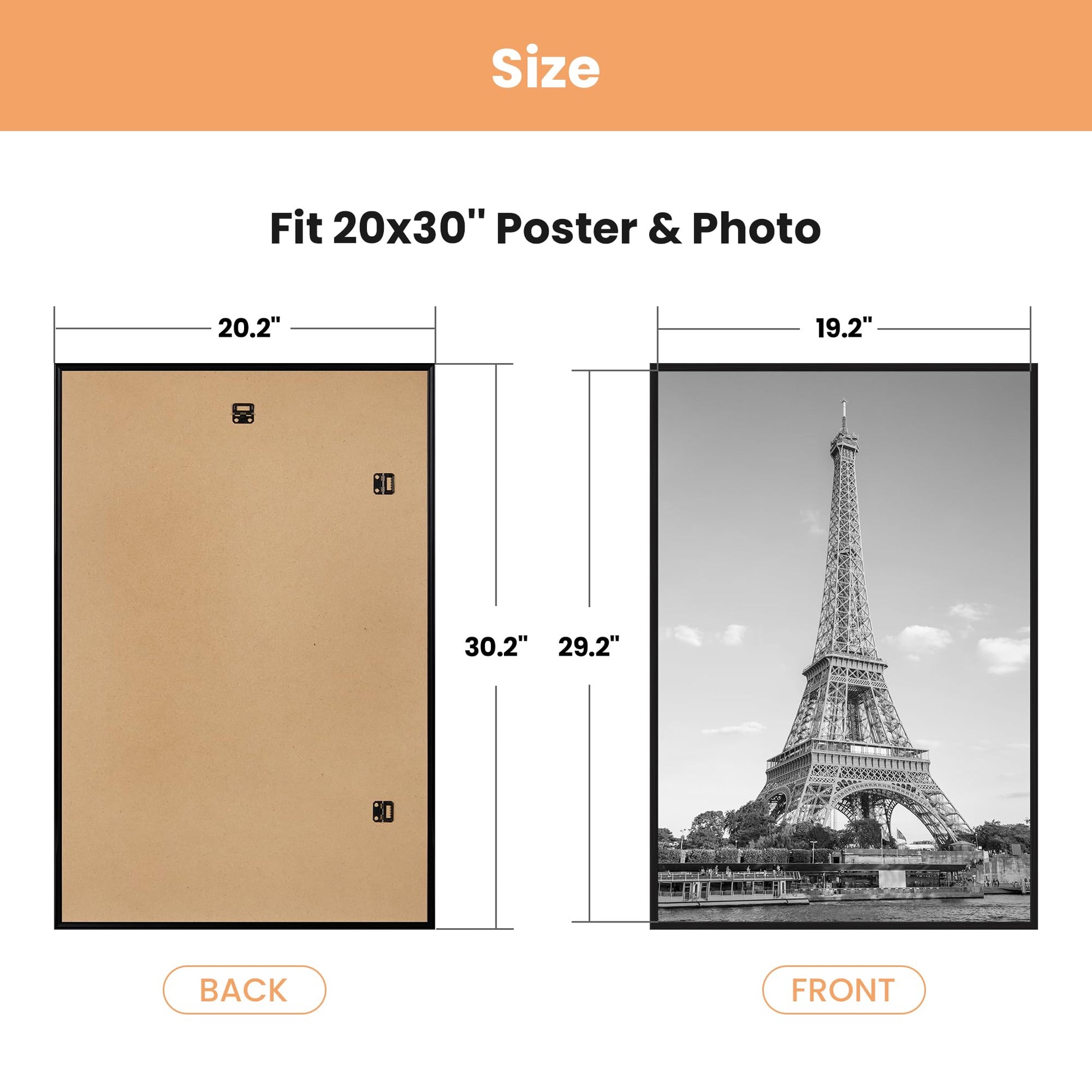 - SIZE: 20x30 poster frame is designed in a modern style and is suitable for hanging on any wall in home, office, photo studio, art gallery, school exhibition hall. The display size will be 0.8inch smaller than photo size to be more stable.
