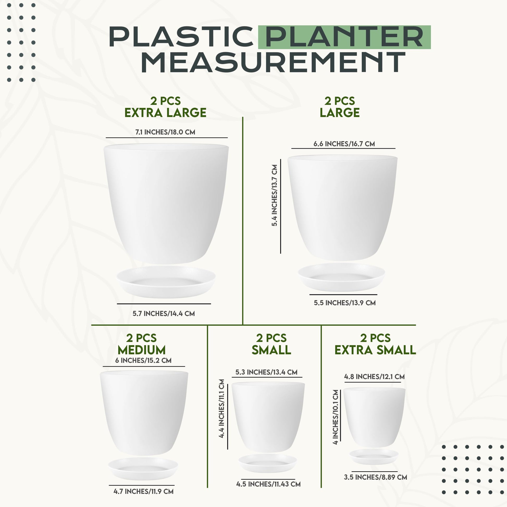 Utopia Home - Plant Pots Indoor with Drainage - 7/6.6/6/5.3/4.8 Inches Flower Pots for Indoor Planter - 10 Pack Plastic Planters - Ideal for Stocking Stuffers or Home Christmas Decorations - White