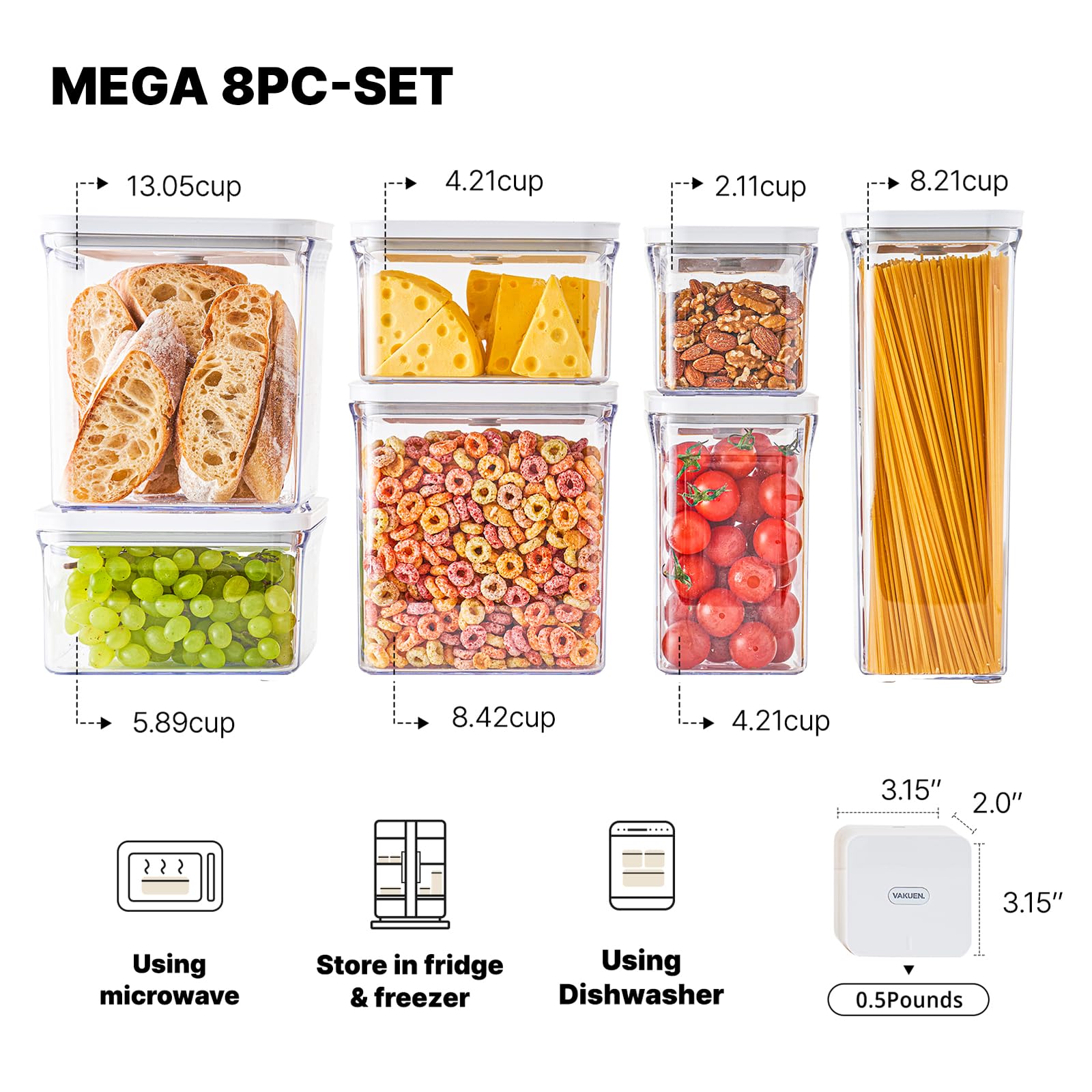 VAKUEN Premium Airtight Food Storage Containers Mega 8P/Set. Total 46.11cup, 7pcs Container and Vacuum Sealer. Smart One-Click Seal Lid, Patented Double Silicone Lining, 100% Leak Proof, BPA-FREE