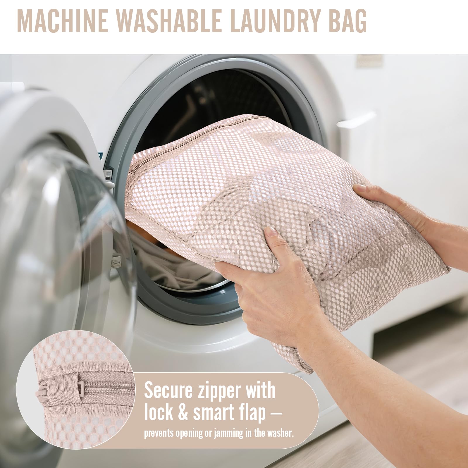 - Versatile Laundry Bag: Made with breathable mesh, the included laundry bag doubles as a washing bag—suitable for tossing straight into the washing machine. A smart zipper guard keeps it securely closed during cycles, reducing fabric tangling and wear to extend the life of your clothes.