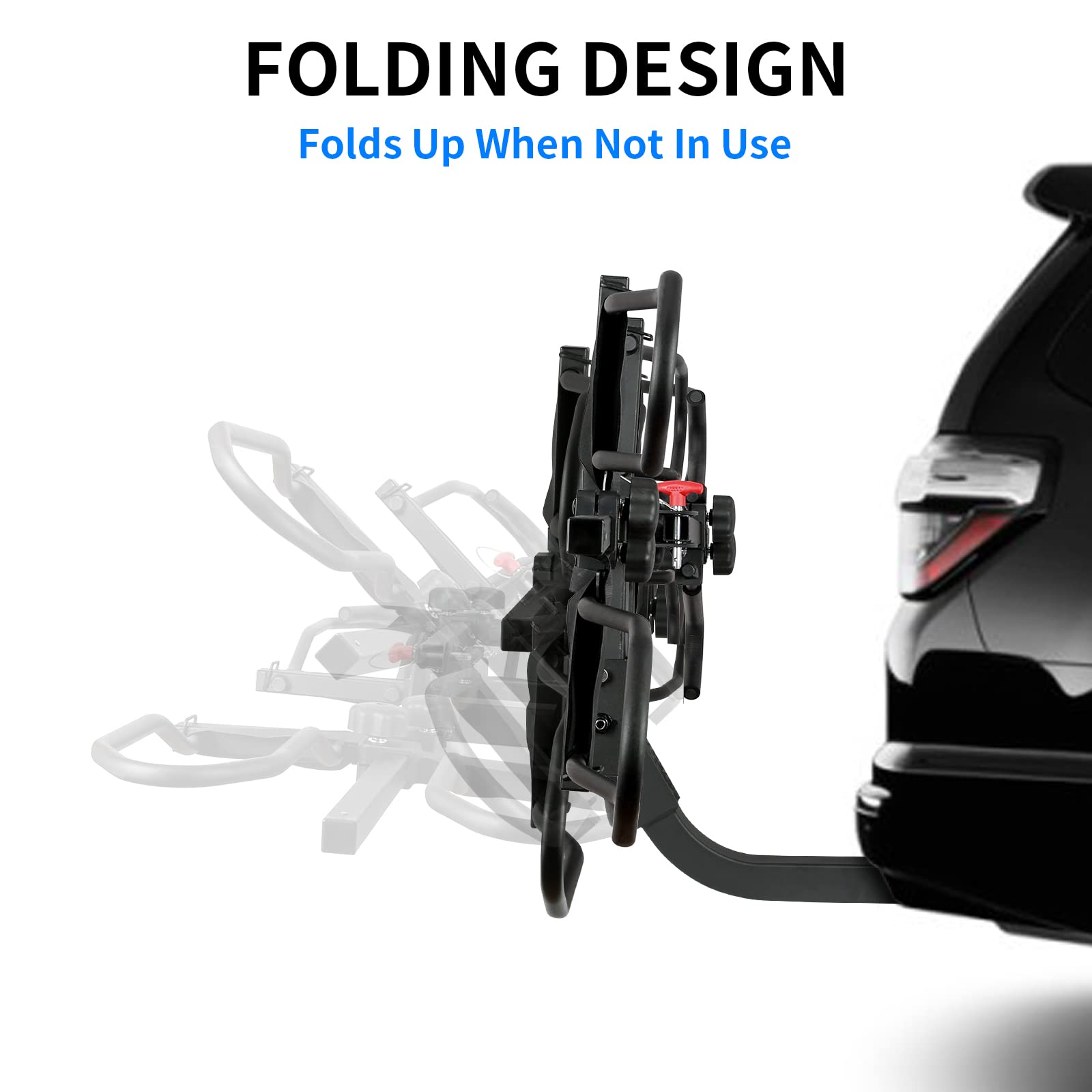 WEIZE Hitch Bike Rack, Wobble Free Smart Tilting Folding Bicycle Car Racks for Standard, Fat Tire and Electric Bike, 2-Bike 160 lbs Capacity, 2-inch Receiver