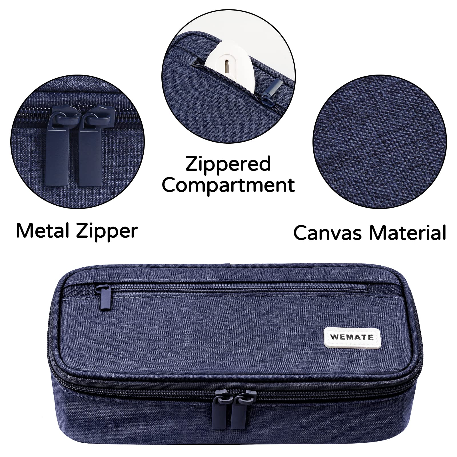 - Premium Canvas: WEMATE large-capacity pencil holder is made of 100% high-quality canvas, is strong and durable. Fine workmanship and provide you with dust-proof, not easy to damage pencil pouch.well-crafted and subjected to strict quality inspection, that not only looks great but will last for years to come