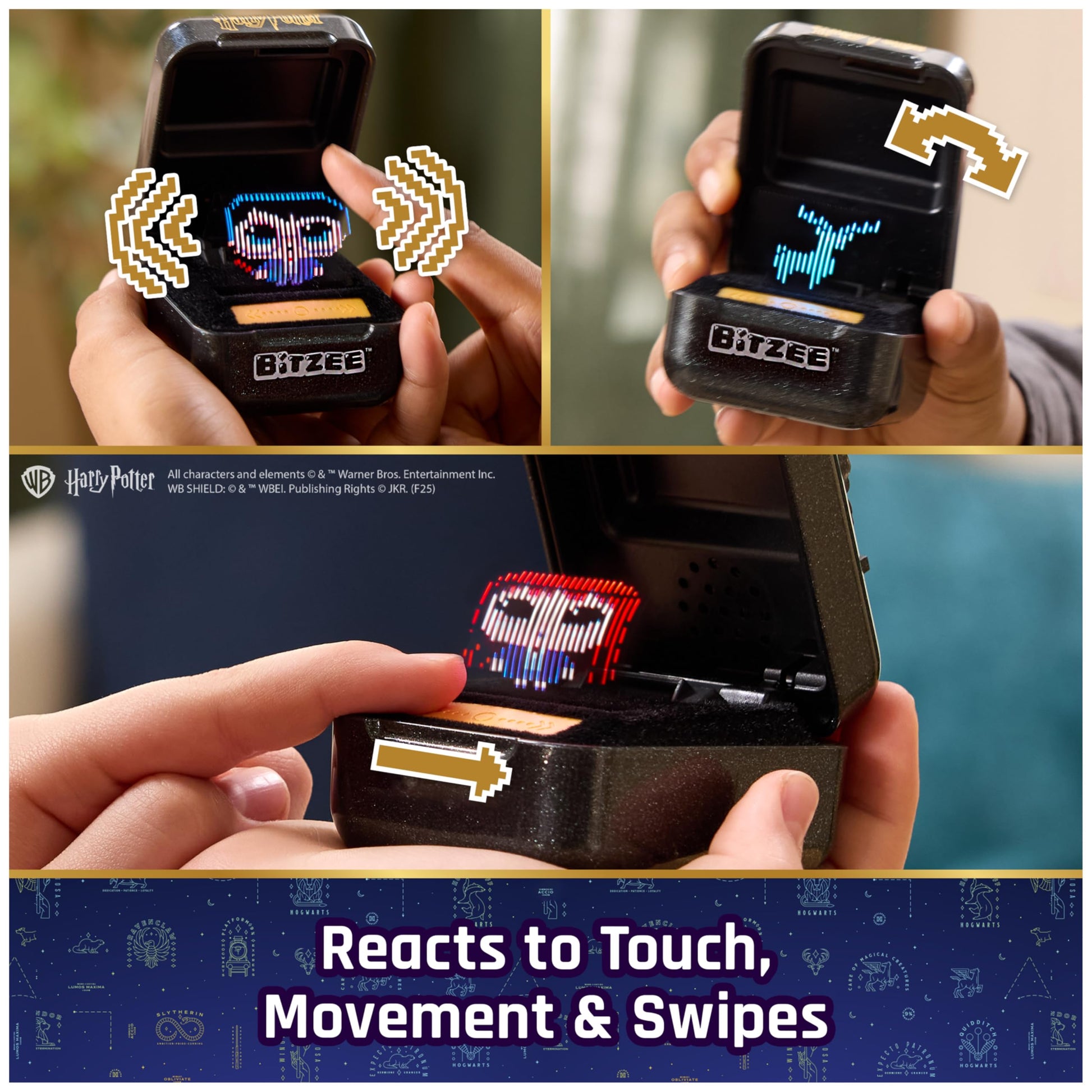 - Digital friends you can interact with: Interact with Harry Potter characters like never before with Bitzee. The Hogwarts pod responds to touch, movement, swipes & tilts with interactions & sounds. Includes 3 AA batteries