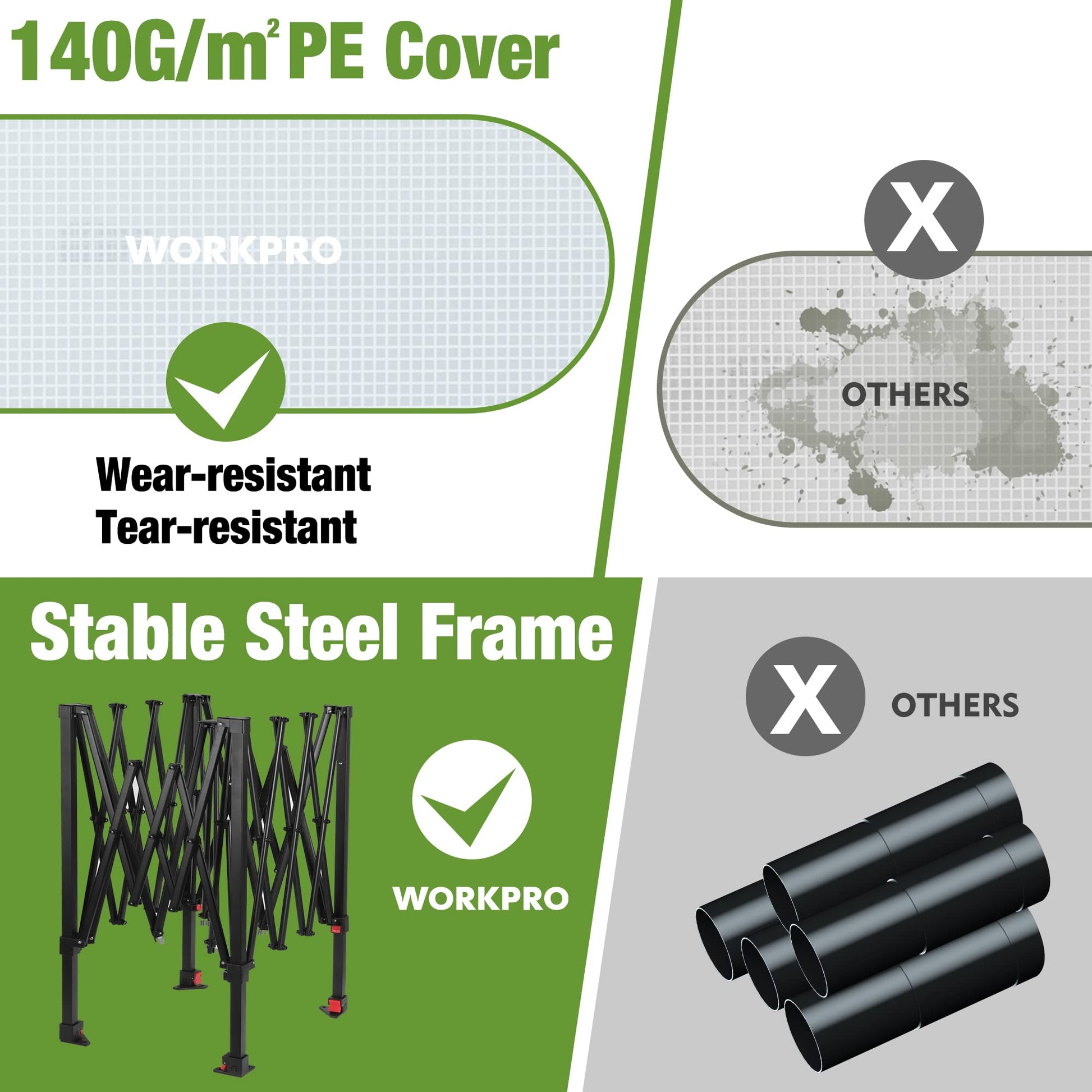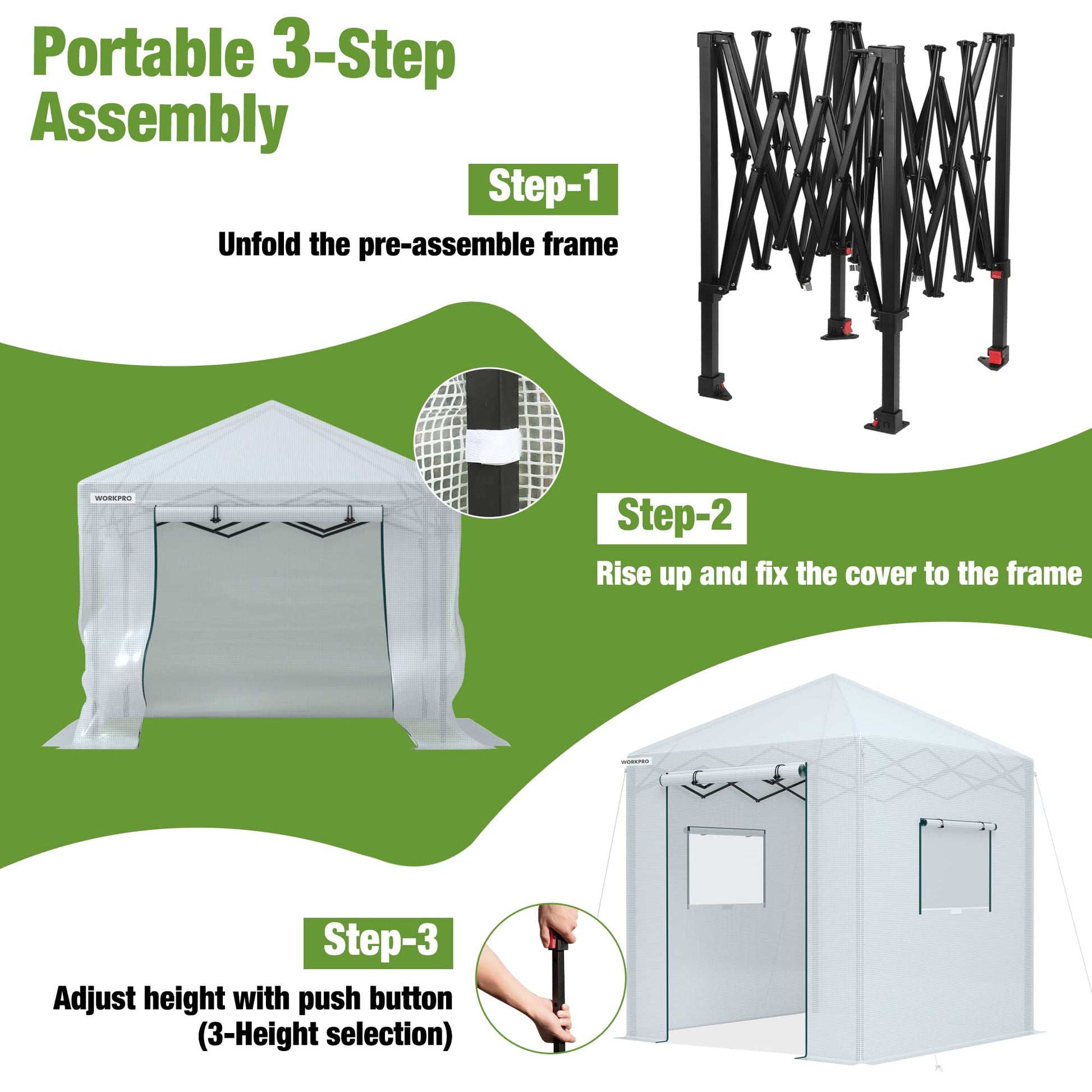 WORKPRO Greenhouse, 94" x70" x98" Instant Pop-up Heavy Duty Gardening Green House Canopy with Robust PE Cover, Indoor Outdoor Plant House Shed with Roll-up Entry Doors and 2 Screen Windows