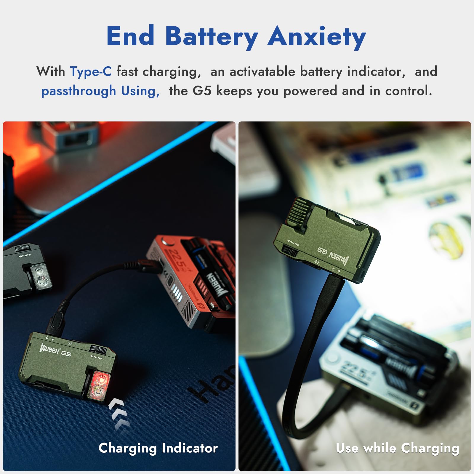 - RECHARGEABLE EDC FLASHLIGHT: WUBEN G5 is a small and powerful flashlight suitable for daily use. It has multiple lighting modes, with a maximum lumen of 400 lumens and a maximum irradiation distance of 82m. The size is 1.47 in x 0.59 in x 2.44 in and the overall weight is only 52.3g. It can be easily put into pockets, backpacks or key chains for easy carrying. It can easily handle situations whether it is for camping in the wild, hiking adventures or family emergencies