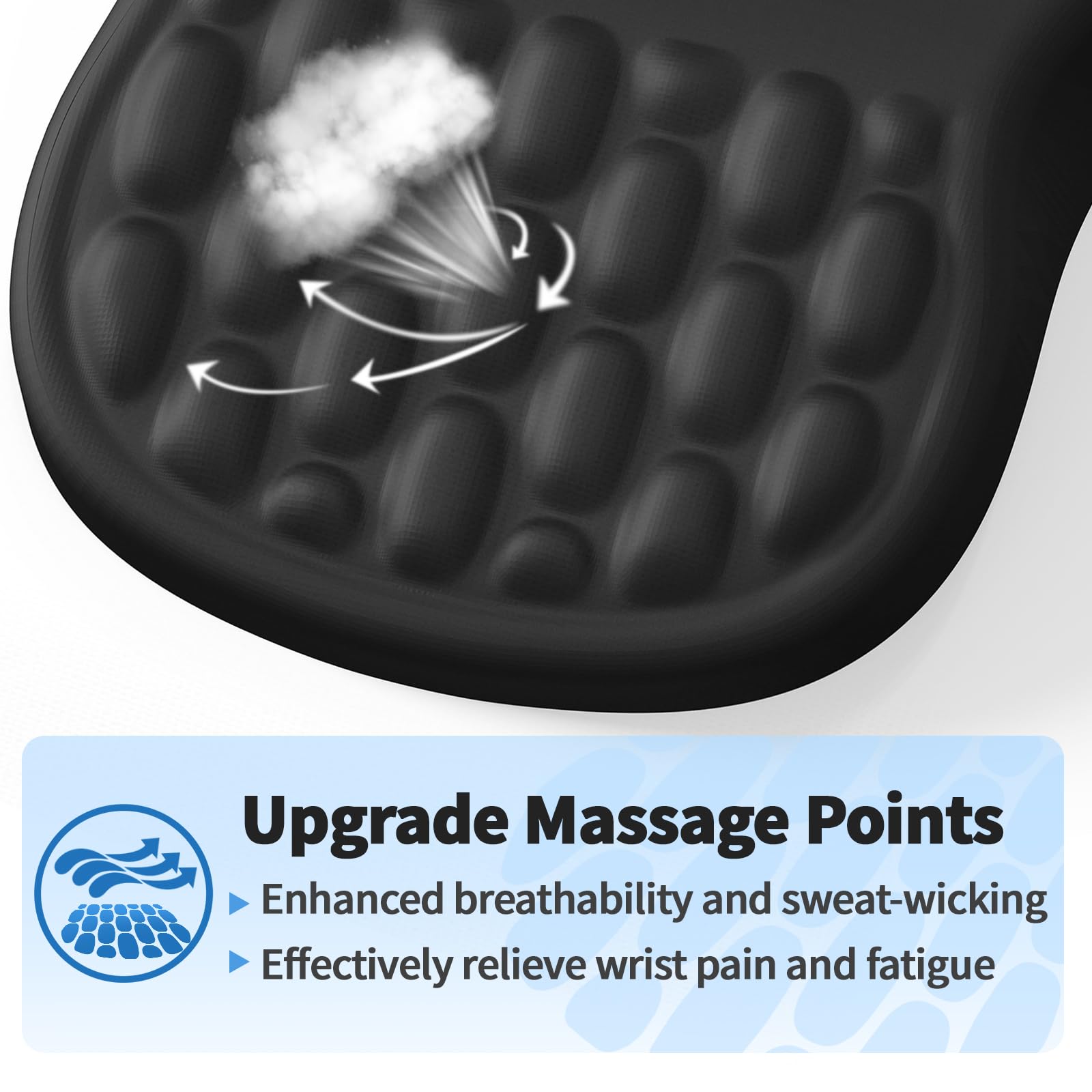 - Ergonomic Mouse Pad: The innovative ergonomic 8-degree slope and massage bump design perfectly support the wrist and palm. Massage bump design can effectively relieve wrist pain and fatigue, improve carpal tunnel syndrome (CTS), strengthen the air circulation between wrist and mouse pad, prevent sweating, and keep your wrist in the most comfortable state.It's your best choice of desk mouse pads.